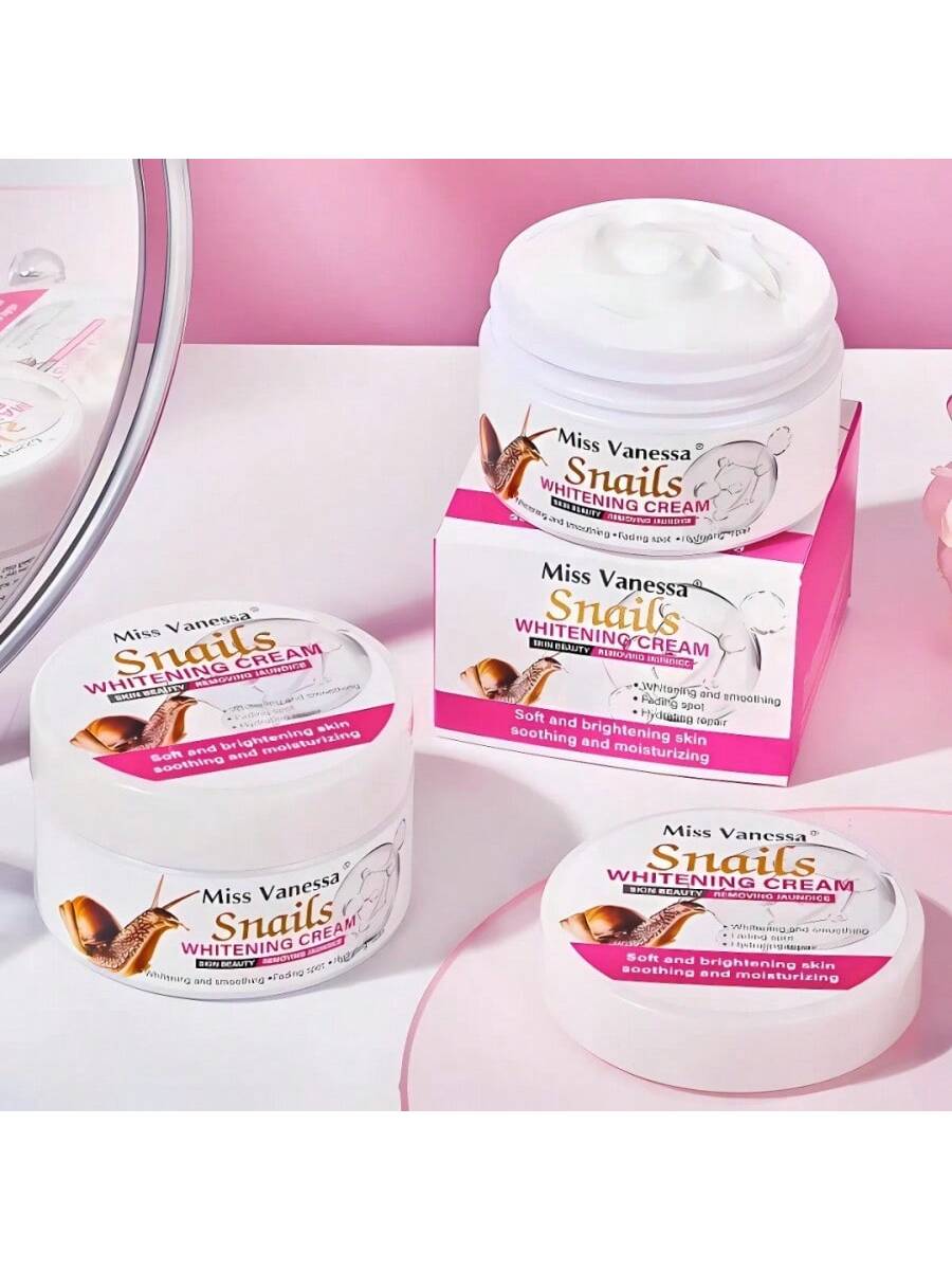 Crema blanqueadora de caracol 120 ml - Formulada con mucina de caracol, esta crema repara e ilumina la piel simultáneamente. Reduce marcas de acné y manchas mientras hidrata intensamente. Recomendada para pieles dañadas que necesitan recuperar su vitalidad.