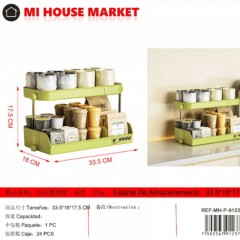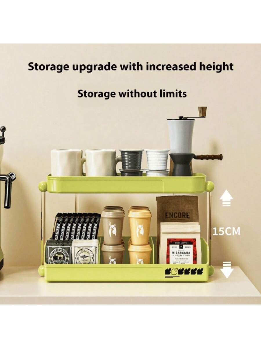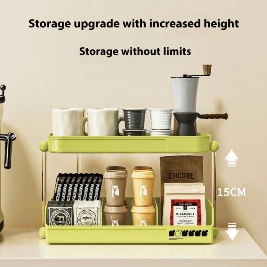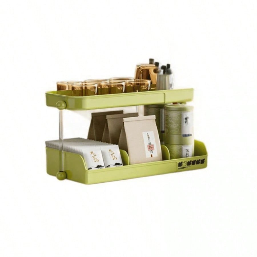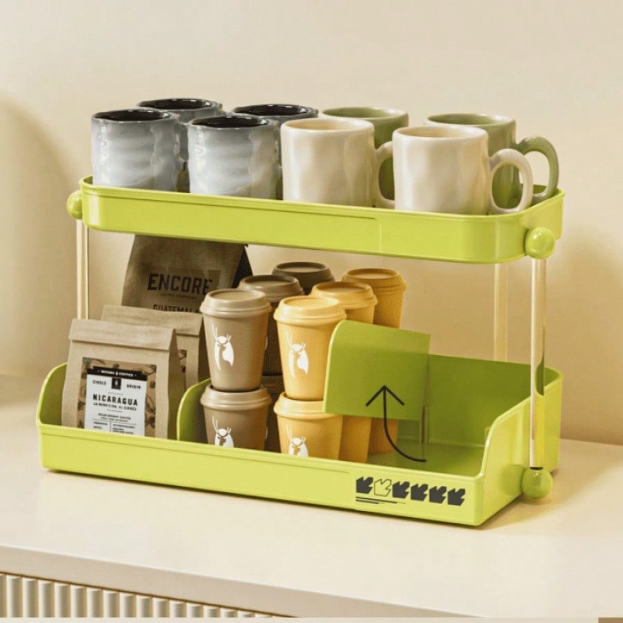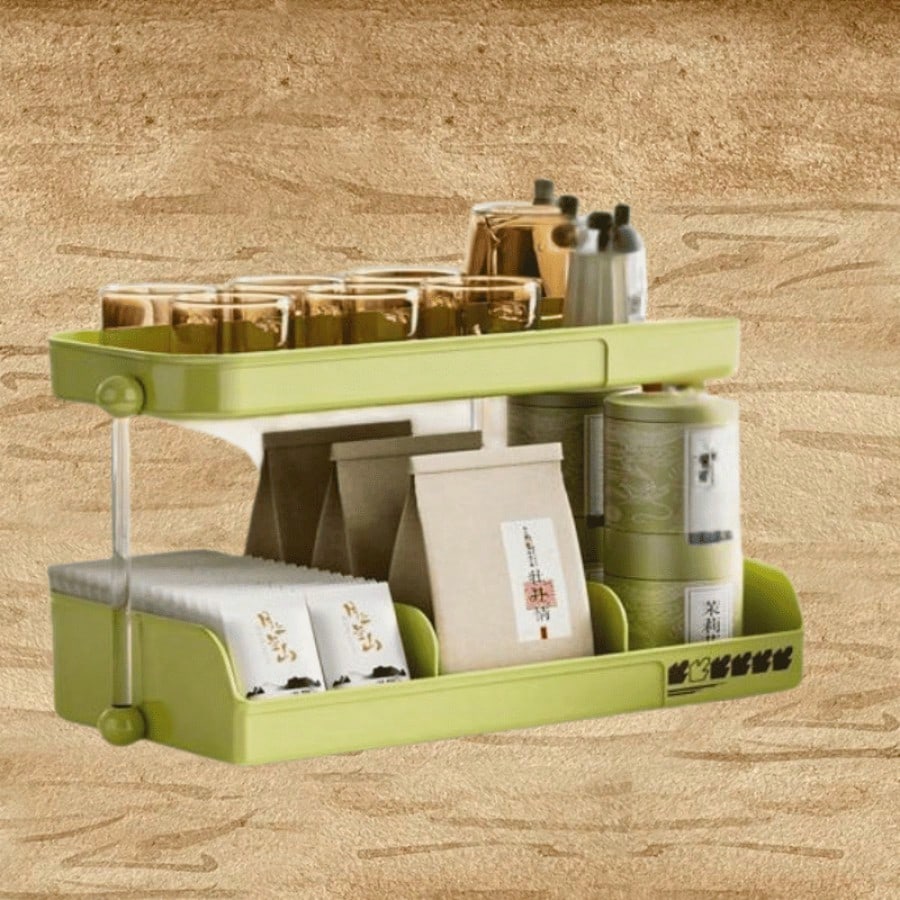 Versátil estante de dos niveles en tono verde, perfecto para añadir capacidad de almacenamiento con estilo. Ideal para uso en cocina, baño o dormitorio para organizar utensilios, productos o elementos decorativos. Fabricado con materiales duraderos y de fácil limpieza.
