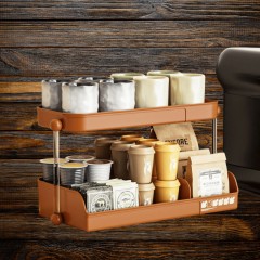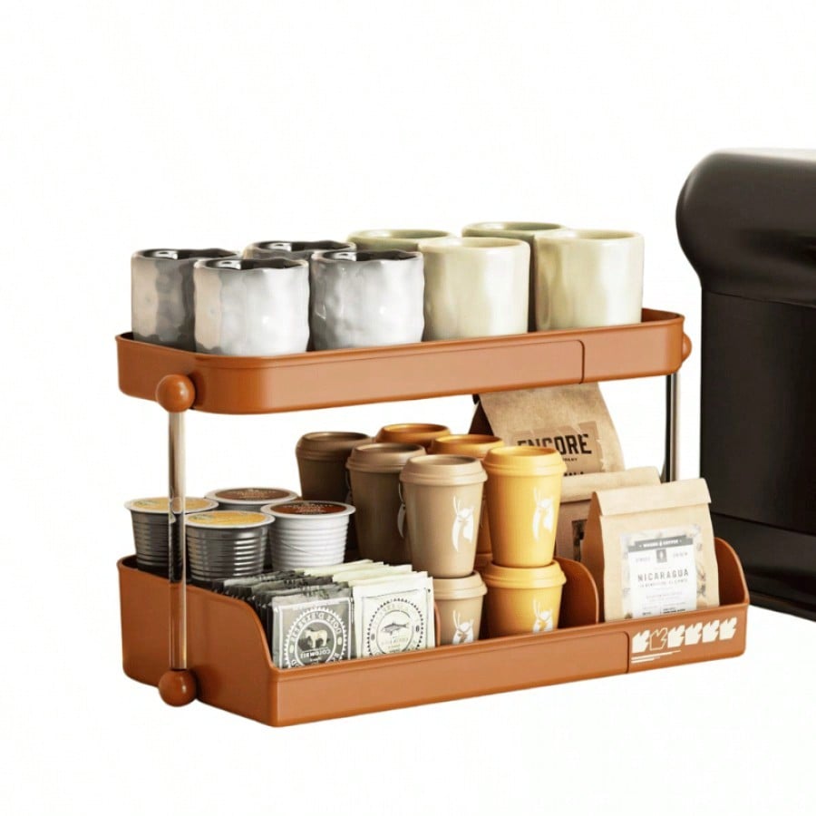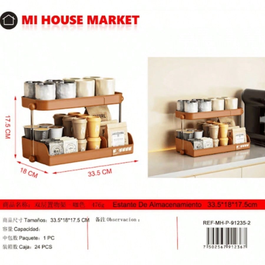 Estante funcional de dos niveles en color café, ideal para organizar espacios con un estilo cálido y acogedor. Perfecto para almacenar libros, plantas pequeñas o objetos decorativos en cualquier estancia. Construcción robusta y diseño compacto.