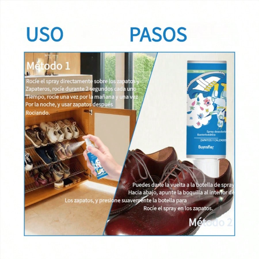 Spray refrescante que ayuda a neutralizar olores en calzado y calcetines. Proporciona frescura duradera.