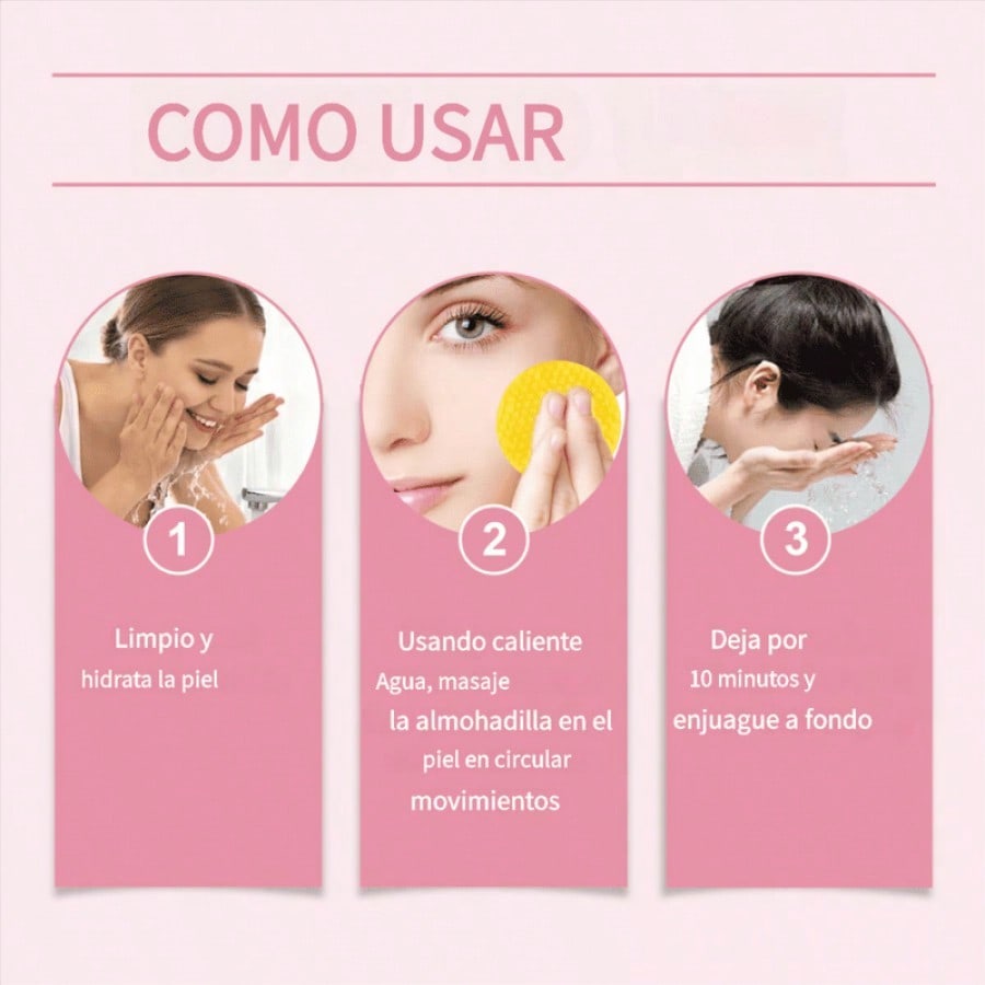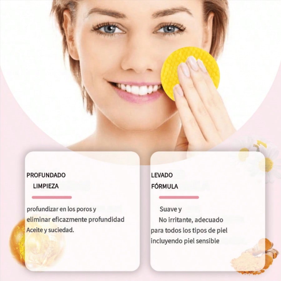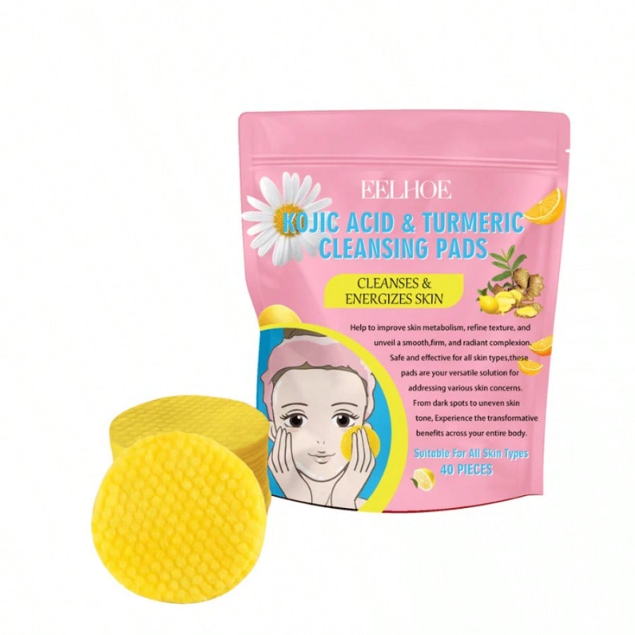 Discos de limpieza facial impregnados con cúrcuma y ácido kójico. Ayudan a unificar el tono de la piel y reducir impurezas.