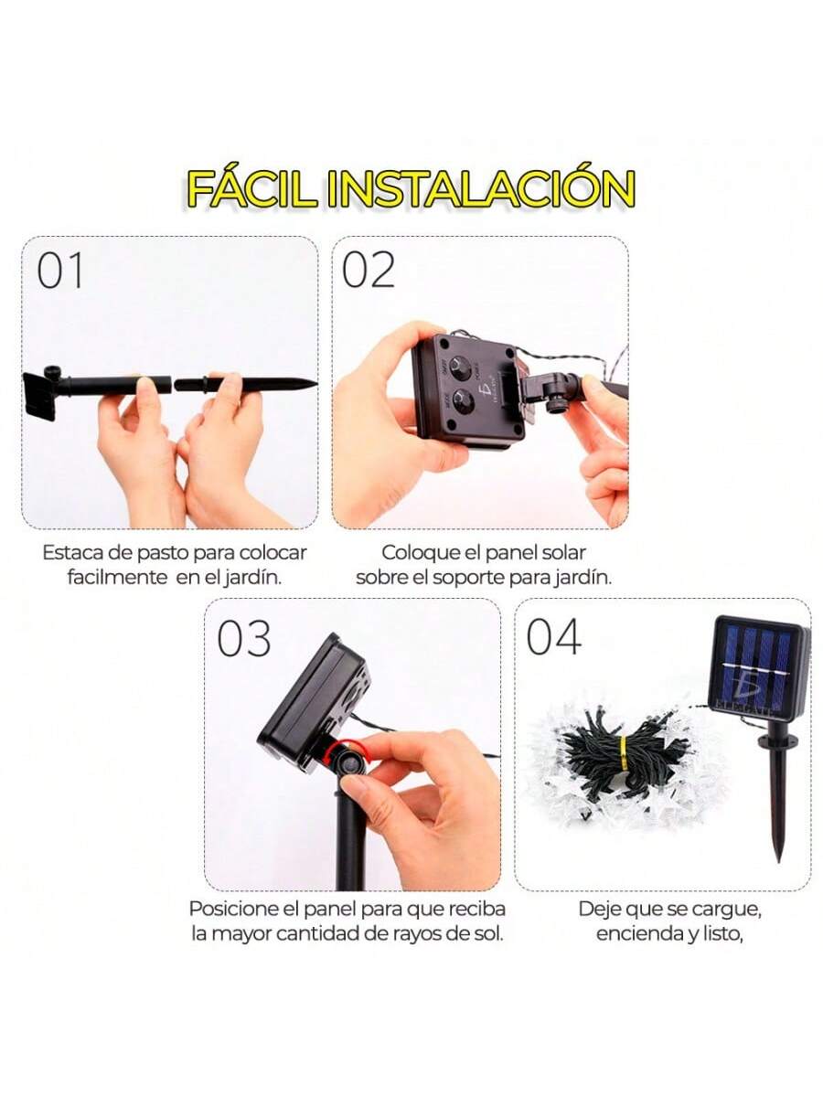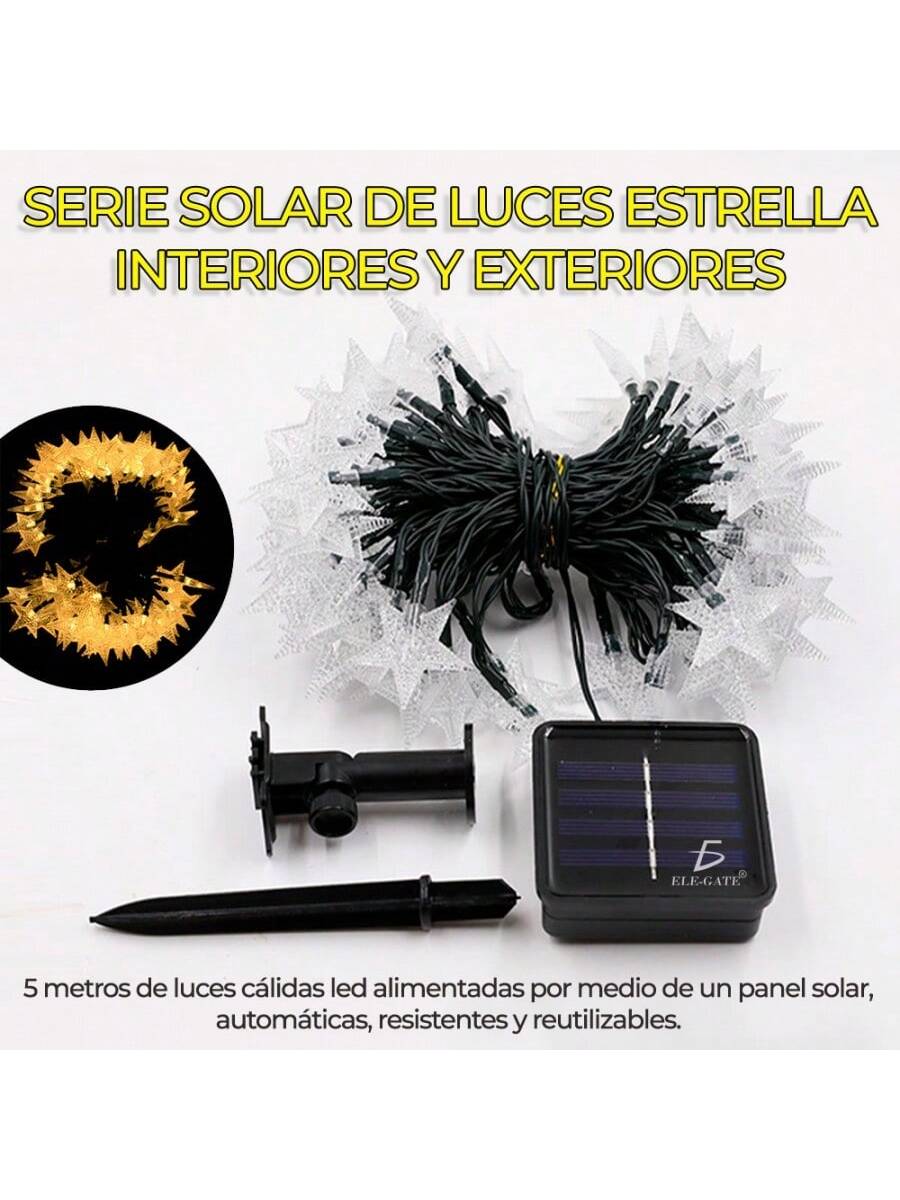 Número de modelo LED.34 Potencia de la lámpara (W) 30 Color de emisión Amarillo Luces de Navidad con carga solar en forma de estrellas, cadena de luces de 5 metros