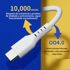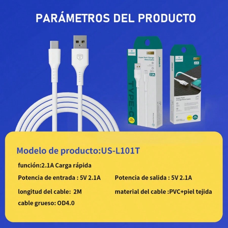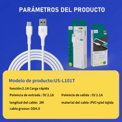 Cable de tipo USB to Tipo C con capacidad para una potencia de carga de 2.1A. Incluye 4 hilos internos que aseguran una transferencia de datos de 480 Mbps. Fabricado en PVC y con 1 metro de largo, es un accesorio moderno y útil.