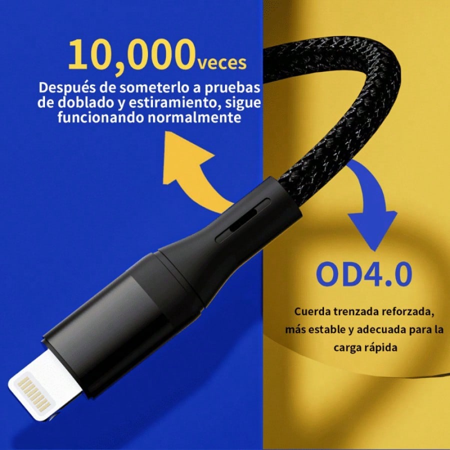 Diseñado con conector Lightning y potencia de carga de 2.4A. Integra 4 núcleos internos para transferencias de 480 Mbps. Este cable de 1 metro, fabricado en PVC y Nailon Trenzado, ofrece un rendimiento confiable y duradero.