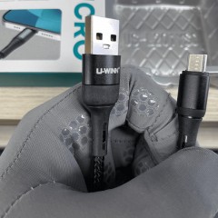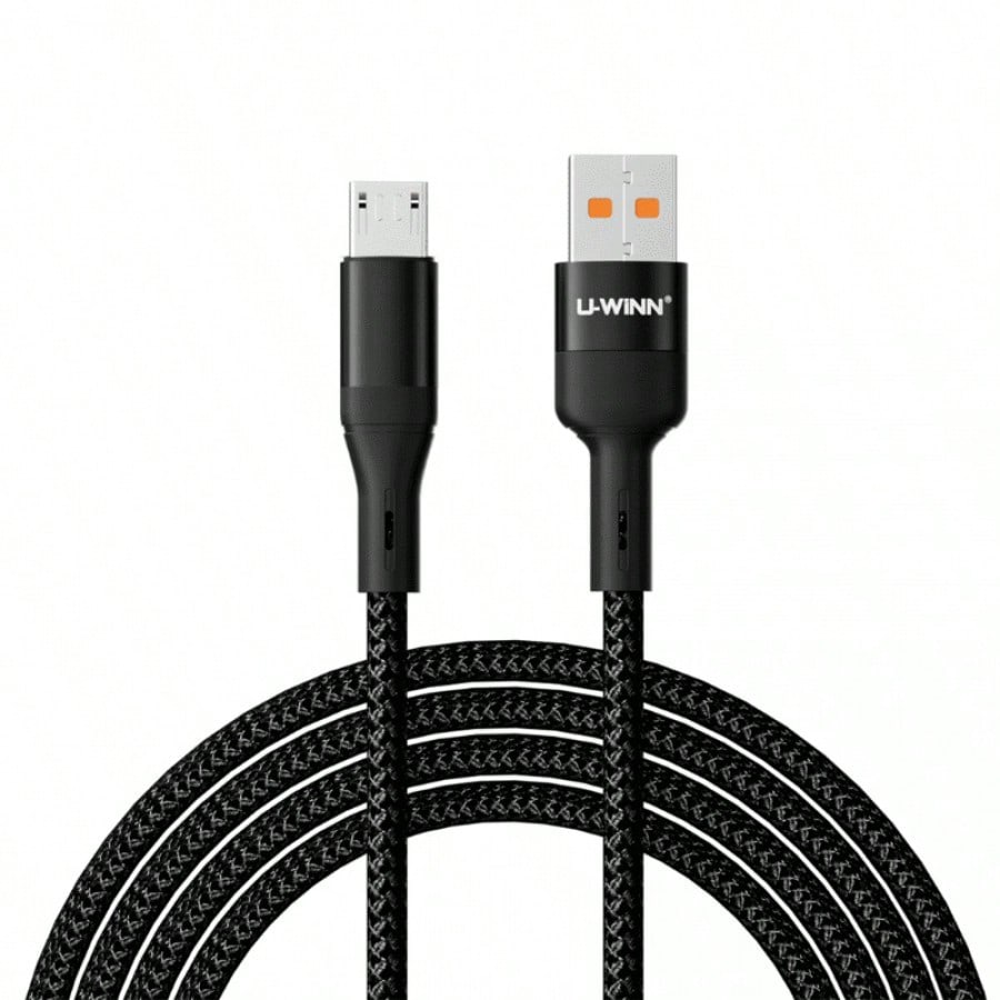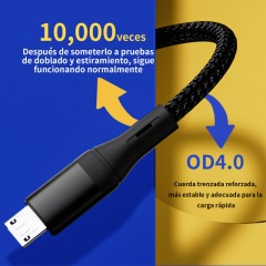 Cable Micro USB con capacidad de carga de 2.4A. Sus 4 hilos internos permiten una transferencia de datos de 480 Mbps. Con una longitud de 1 metro, su material de PVC y Nailon Trenzado lo hace resistente al uso constante.