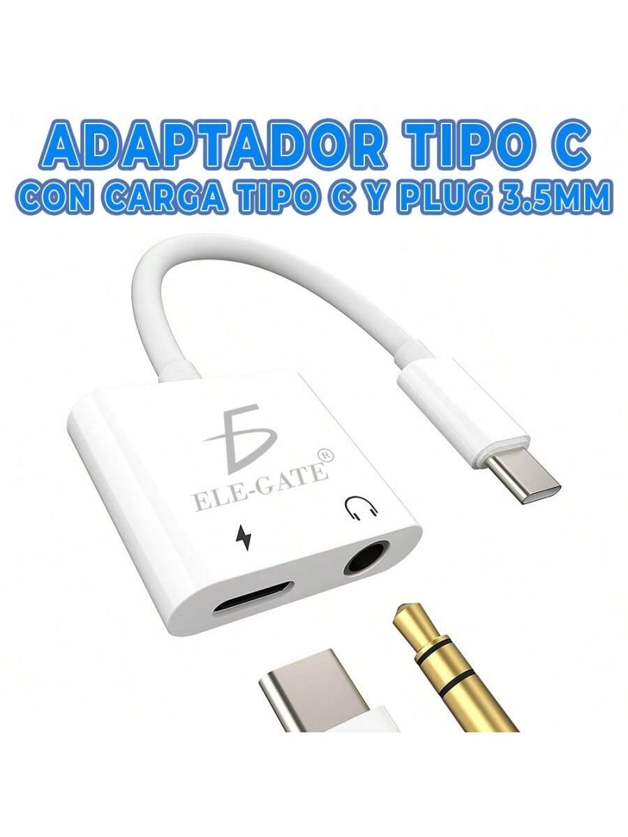 Adaptador de cable de auriculares de doble tipo C a conector de 3.5 mm, 2 en 1