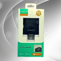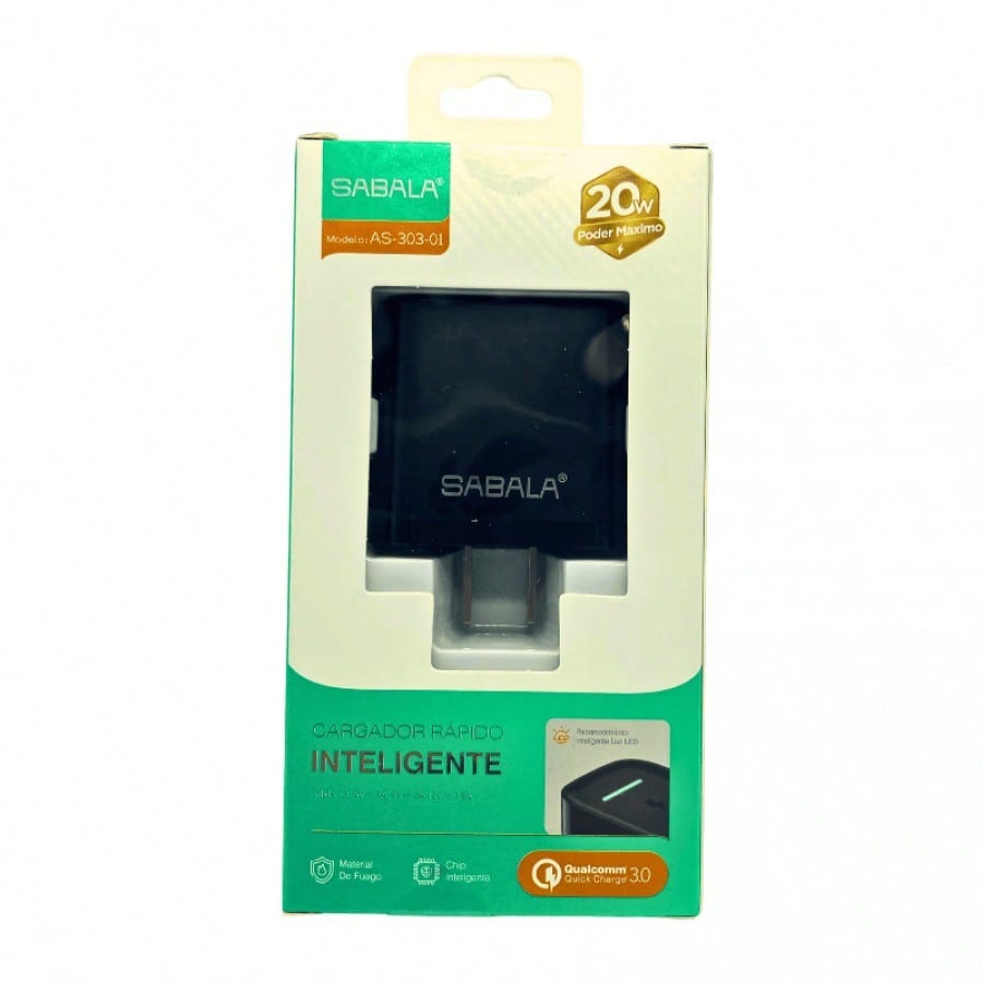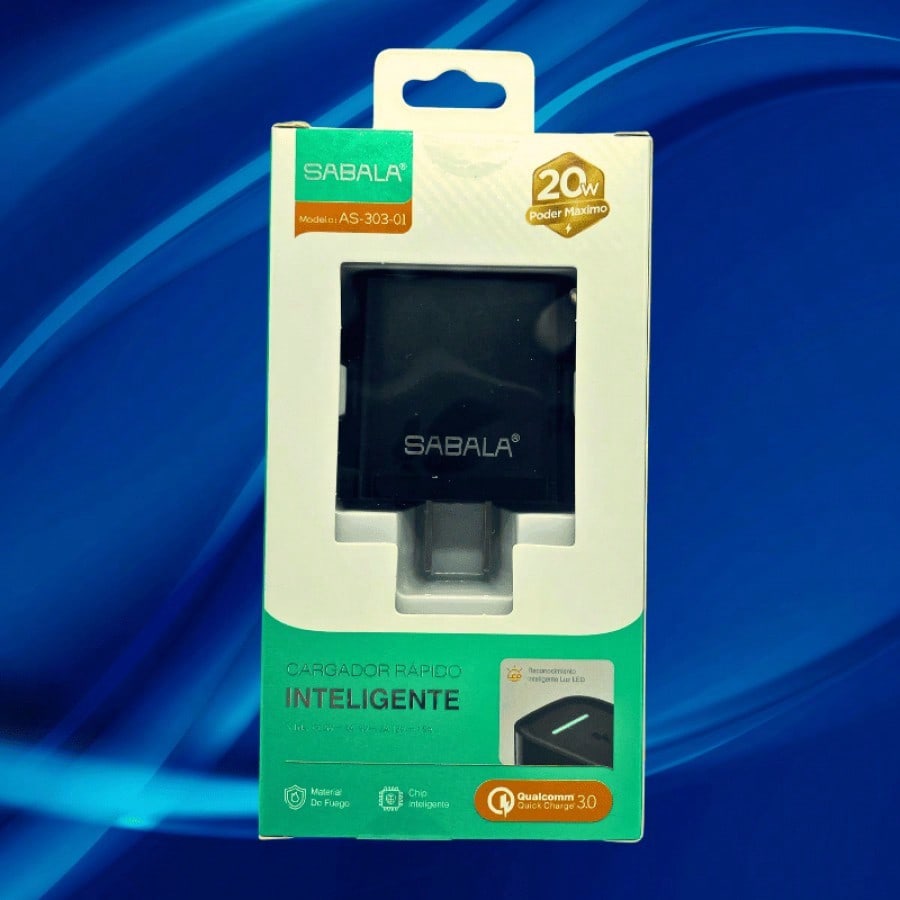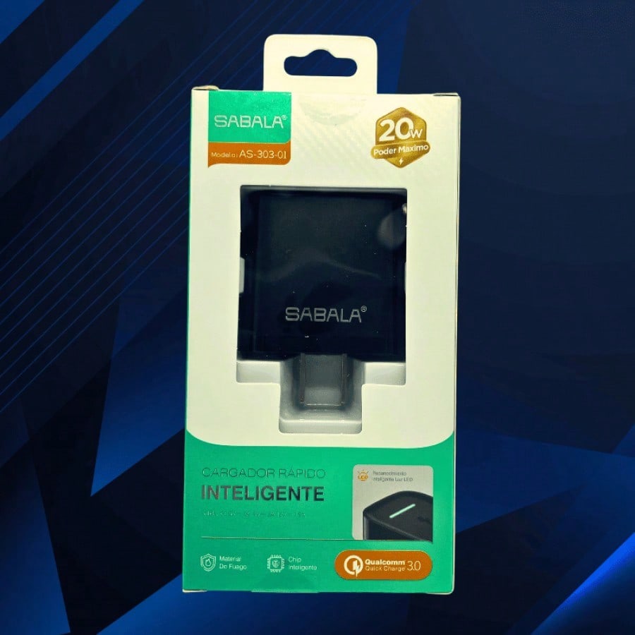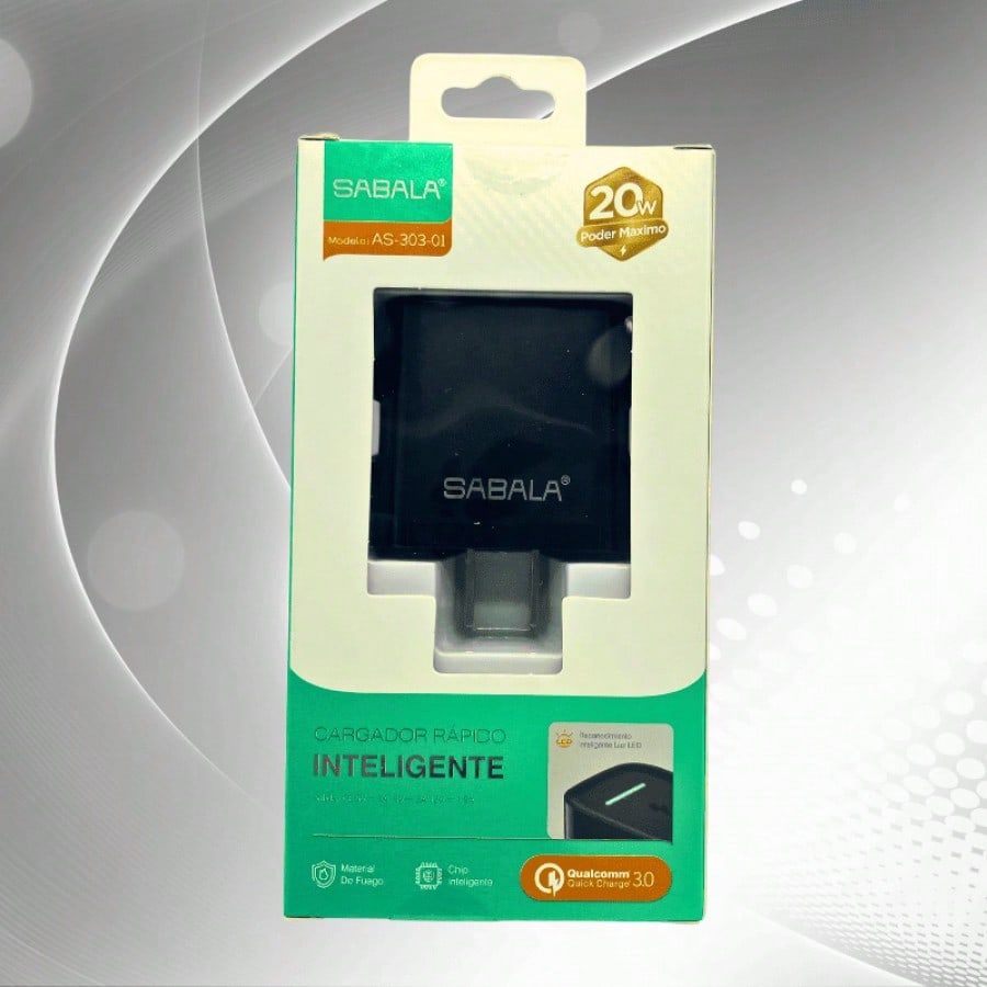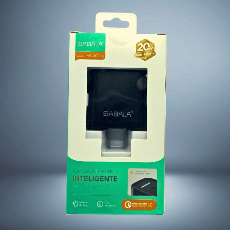 Cabezal de carga de 20W en color negro, diseñado para una carga más rápida y eficiente. Compatible con diversos dispositivos, proporciona un rendimiento mejorado para necesidades de energía más exigentes.