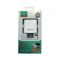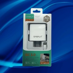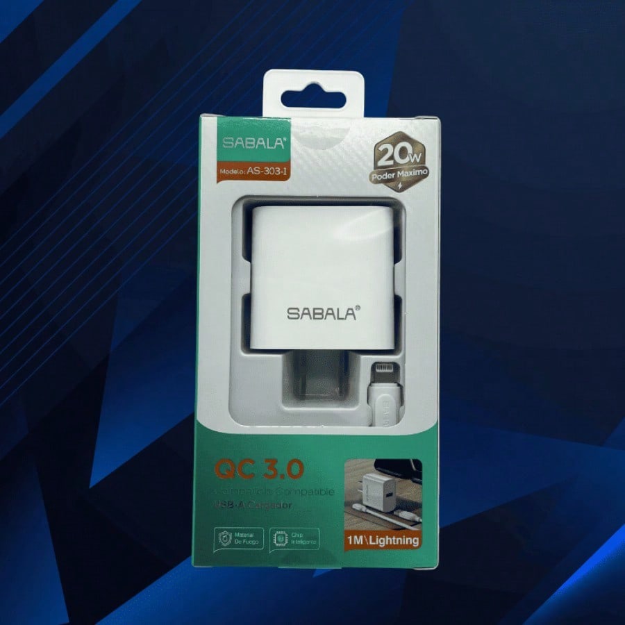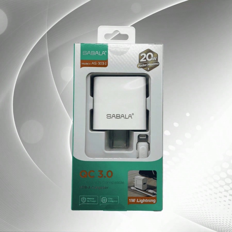 Cabezal de carga con cable IP integrado de 20W en color blanco. Proporciona una carga rápida y confiable con la comodidad de no necesitar cable adicional, en un diseño claro y moderno.