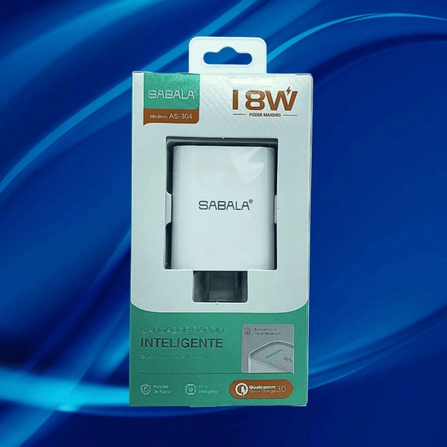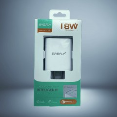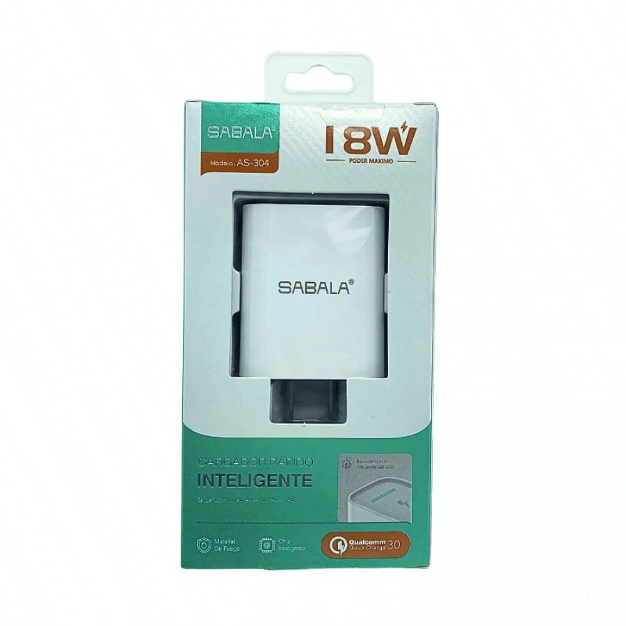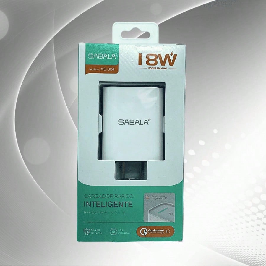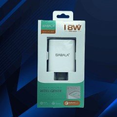 Cabezal de carga de 18W en color blanco, equilibrando potencia y eficiencia. Diseñado para ofrecer un rendimiento confiable en la carga de tus dispositivos electrónicos de uso diario.