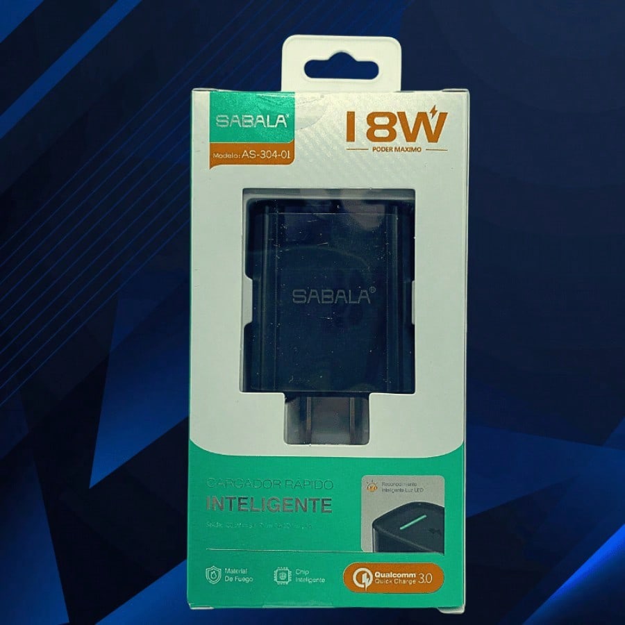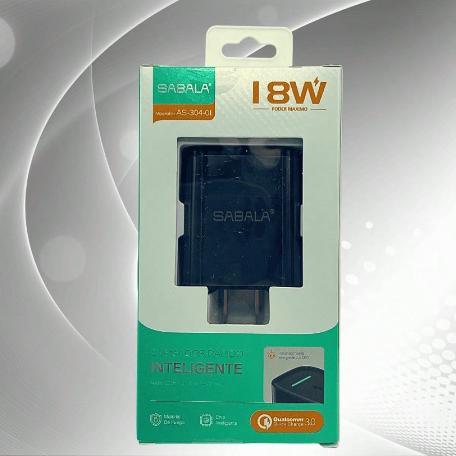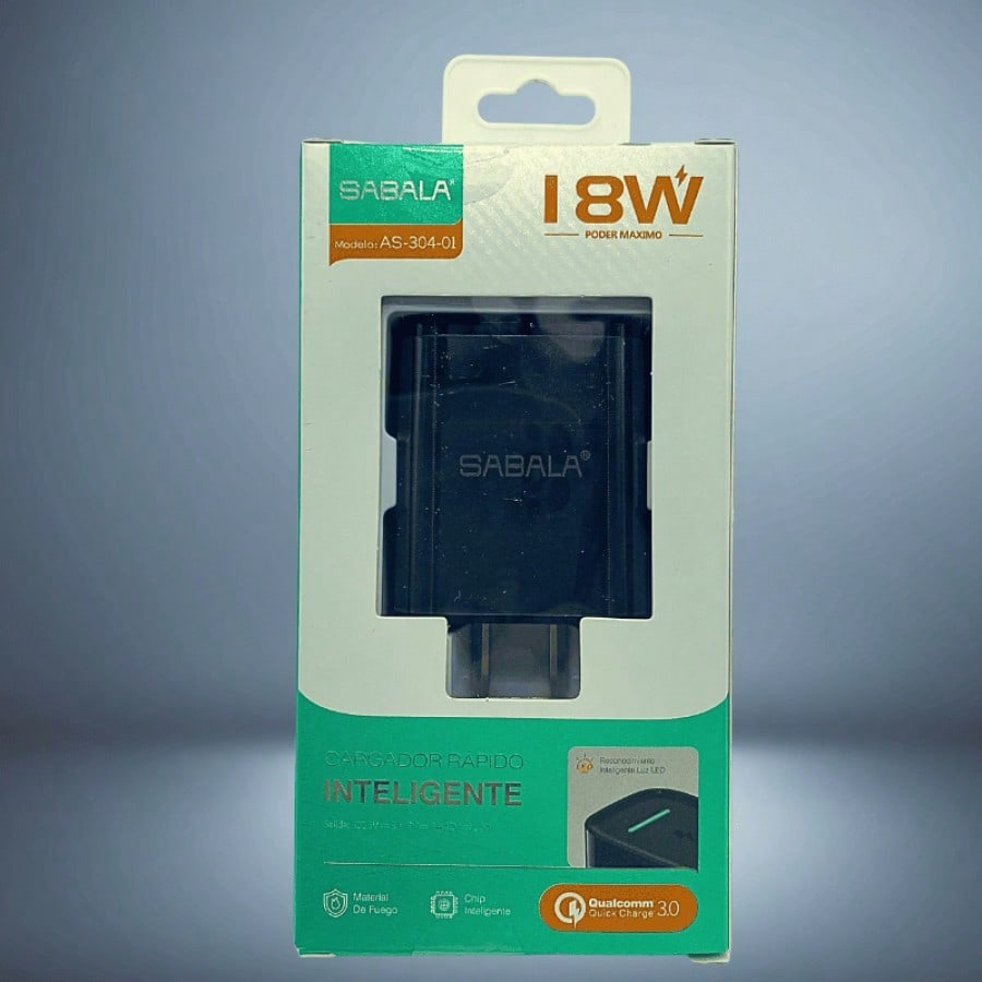 Cabezal de carga de 18W en color negro, proporcionando un equilibrio entre potencia y versatilidad. Ideal para cargar dispositivos de manera eficiente con un diseño discreto y funcional.
