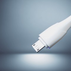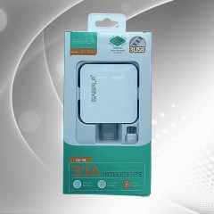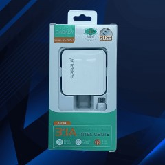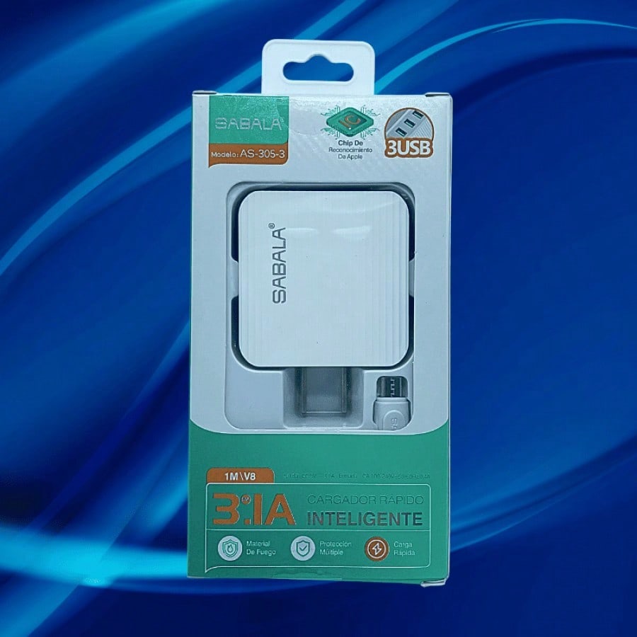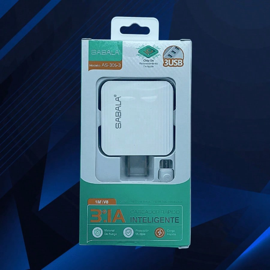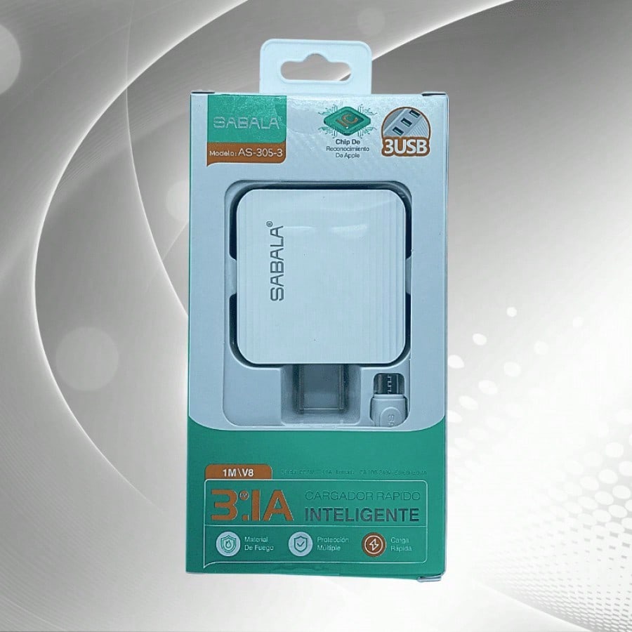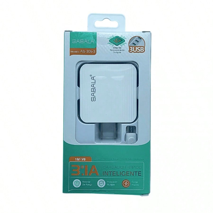 Cabezal de carga con cable V8 de 15W en blanco. Diseñado para proporcionar una carga estable y confiable con un formato específico que busca satisfacer necesidades básicas de energía.