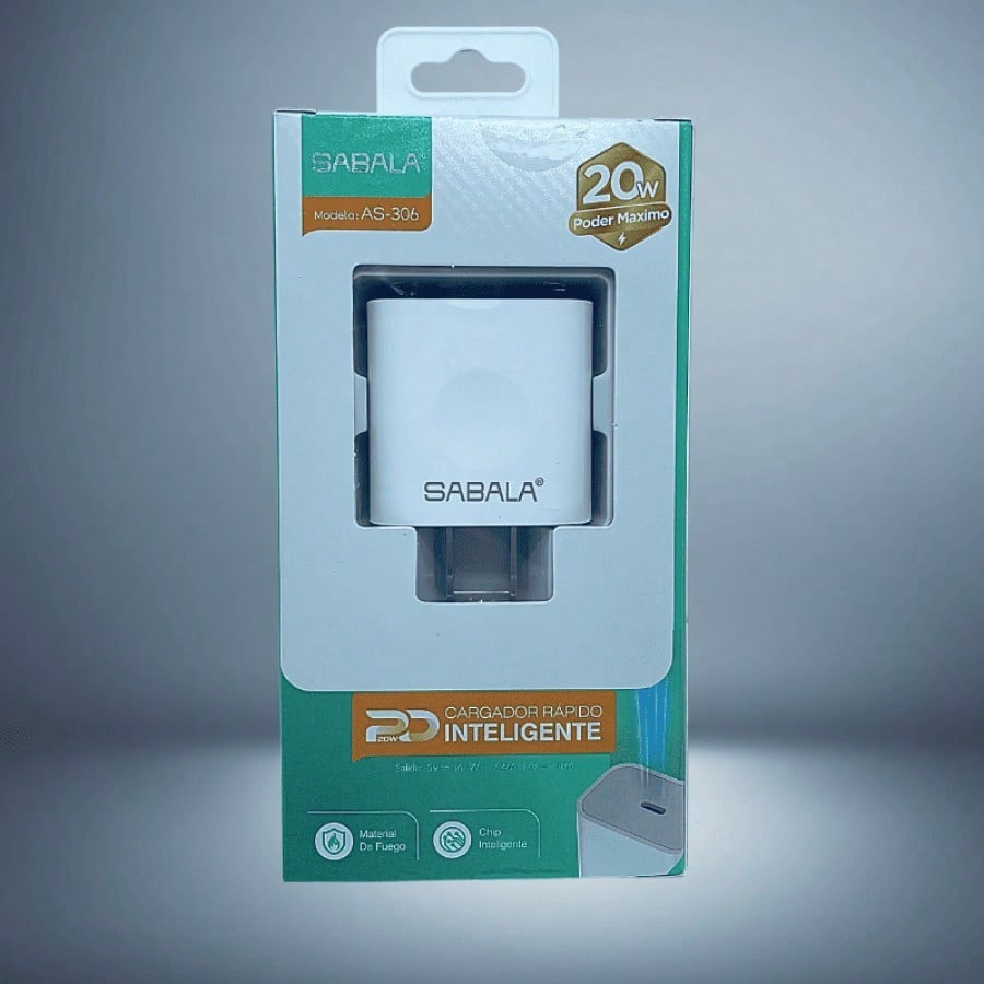 Cabezal de carga de 20W con entrada TC en color blanco. Ofrece carga rápida a través de conexión Type-C, proporcionando un rendimiento mejorado para dispositivos compatibles.