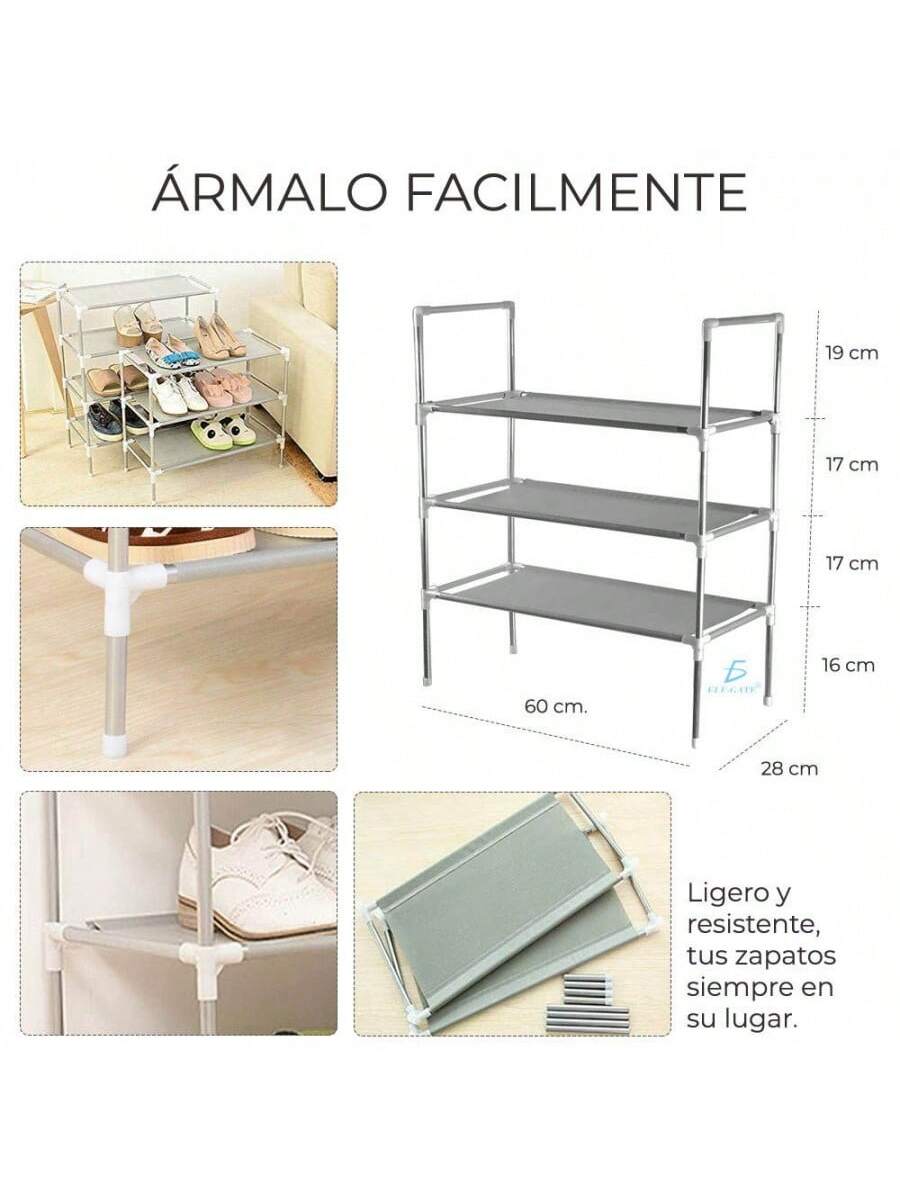 Estantería de almacenamiento de tres niveles para zapatos, fácil de montar