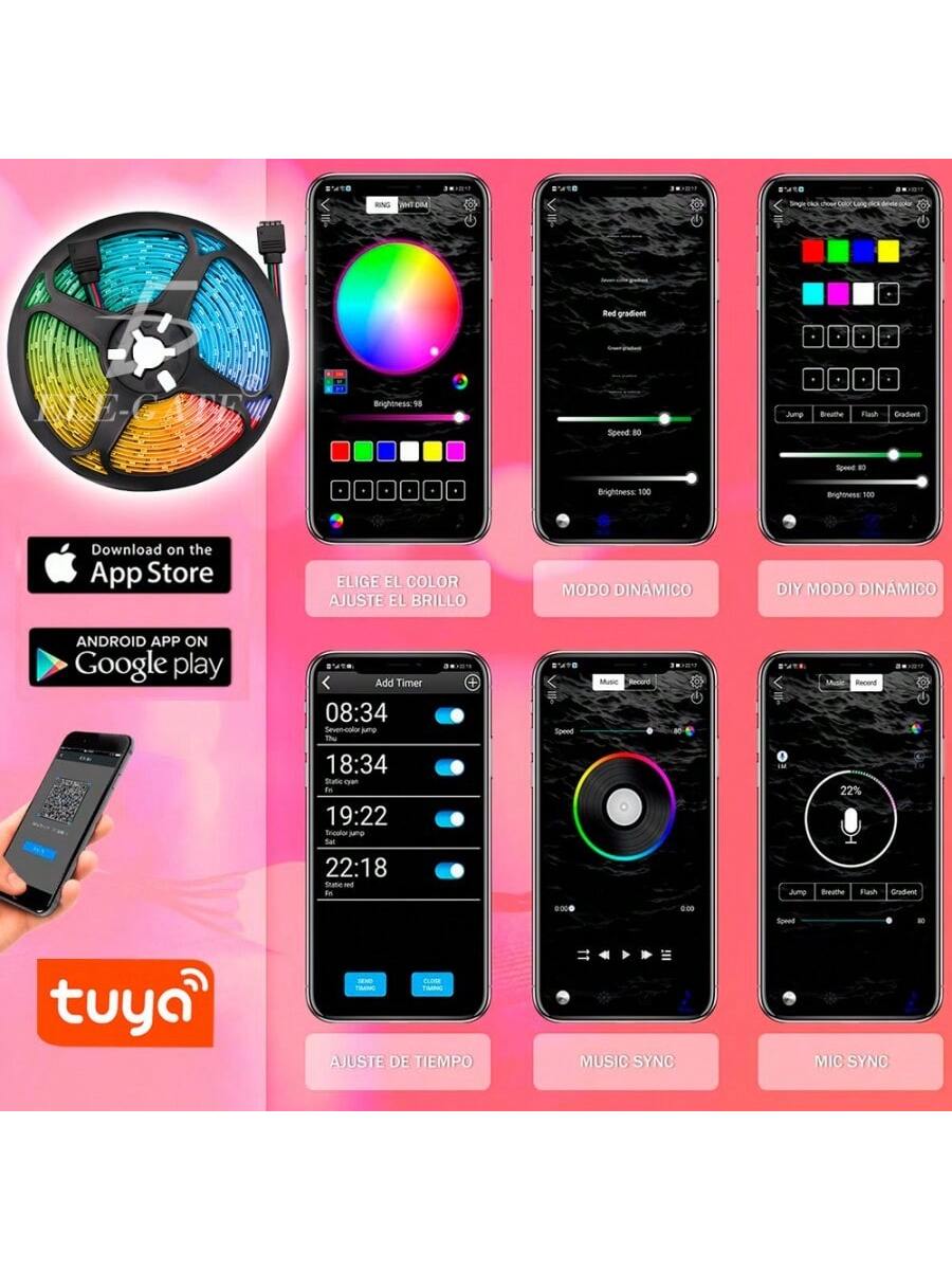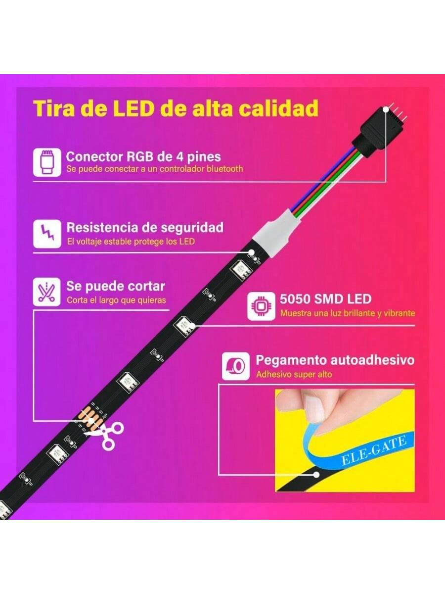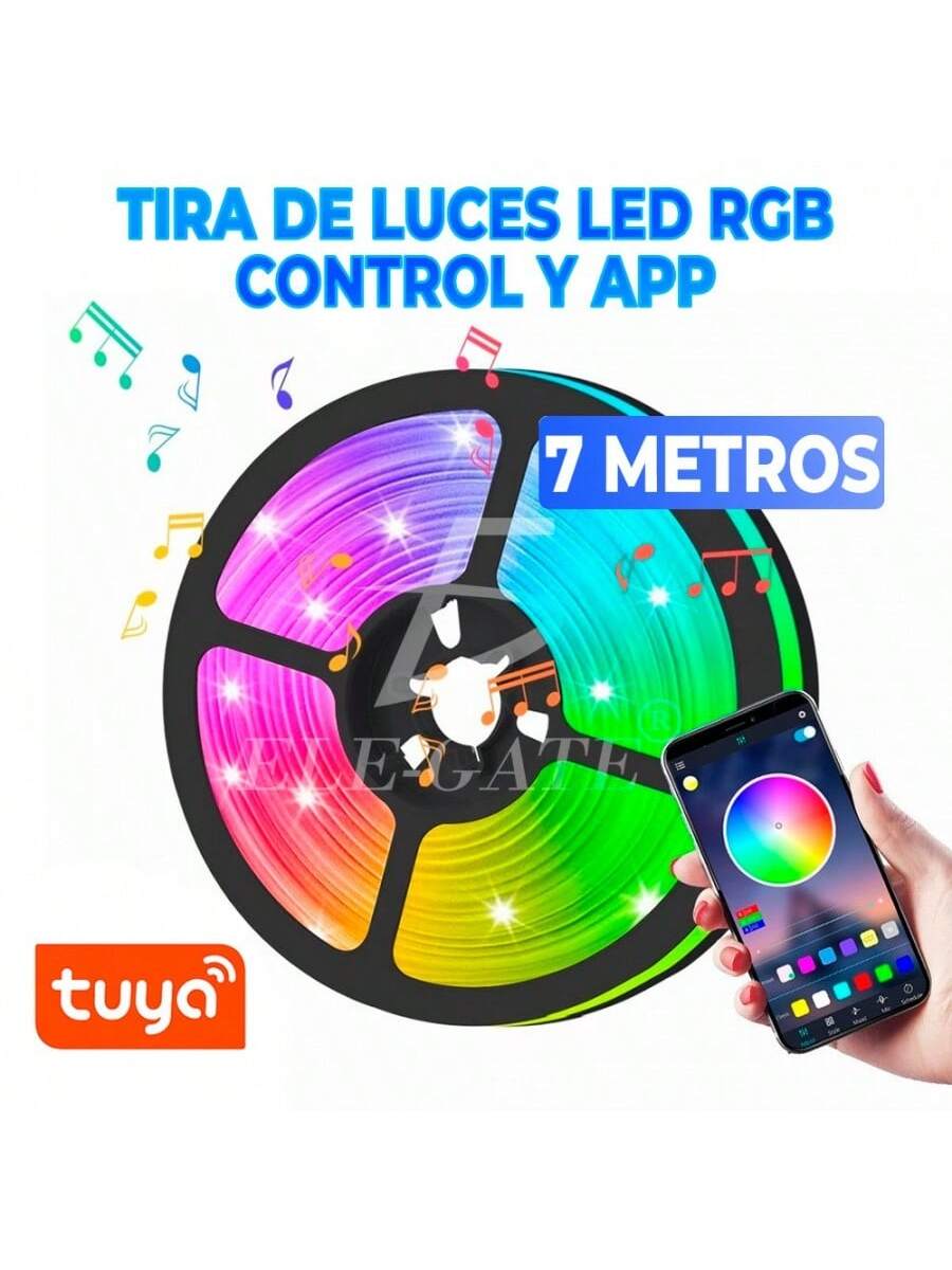 Tiras de luces LED 5050 RGB de 7 metros con control por Bluetooth a través de aplicación