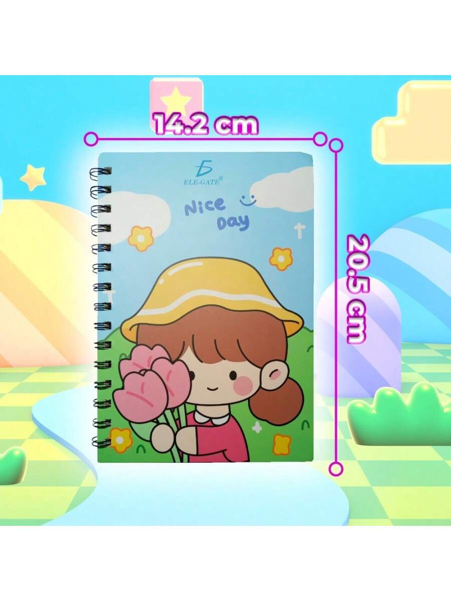 Cuaderno con rayas kawaii de 80 hojas y espiral metálica