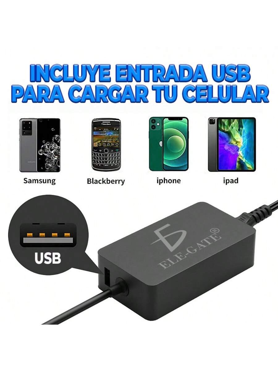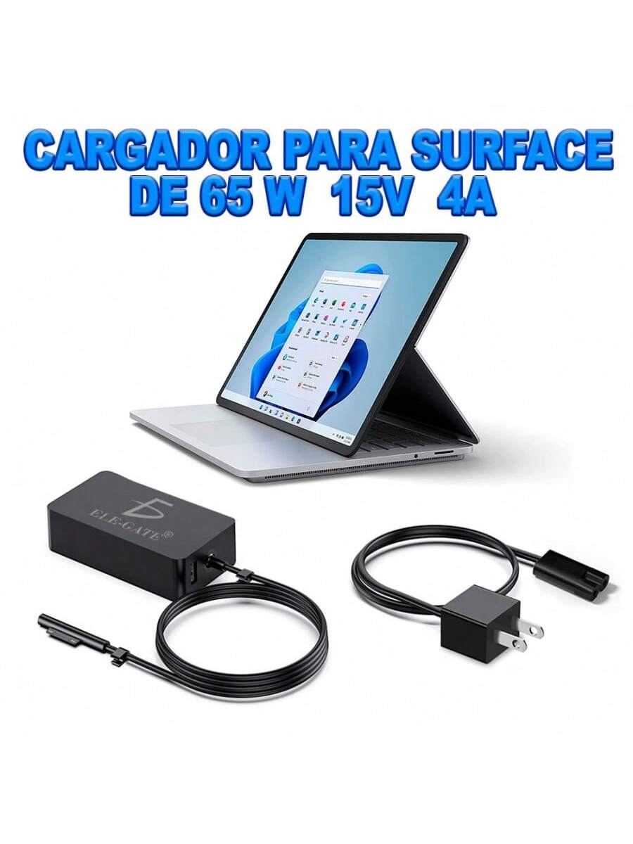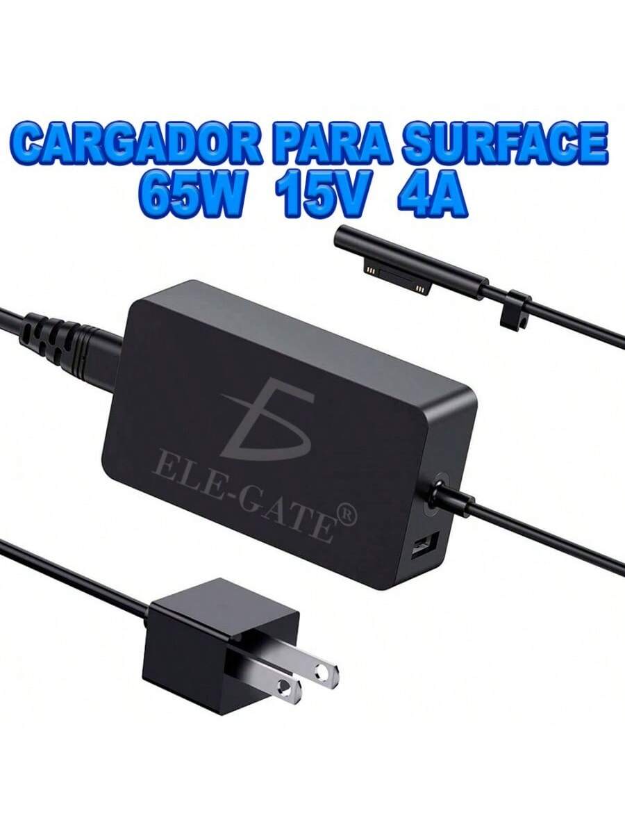 Cargador de 65W, 15V y 4A para Microsoft Surface con puerto USB adicional