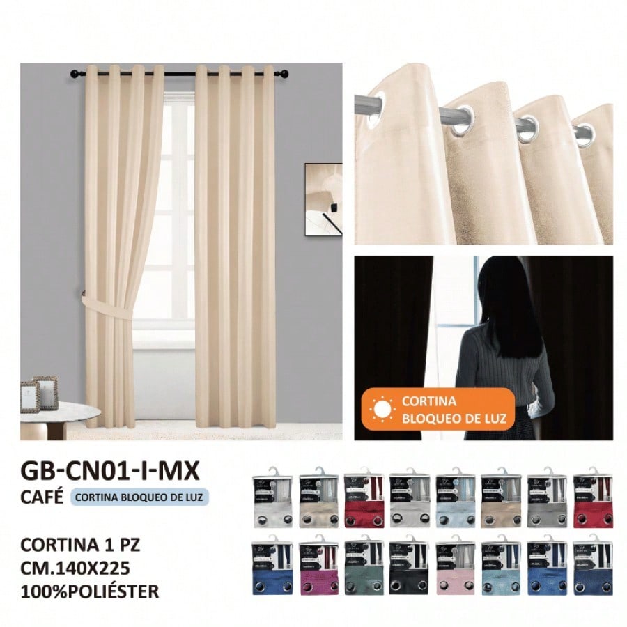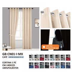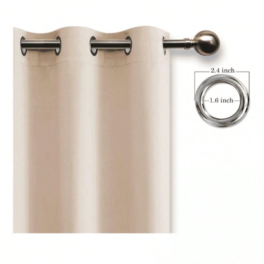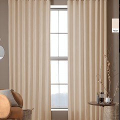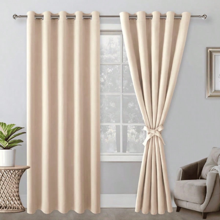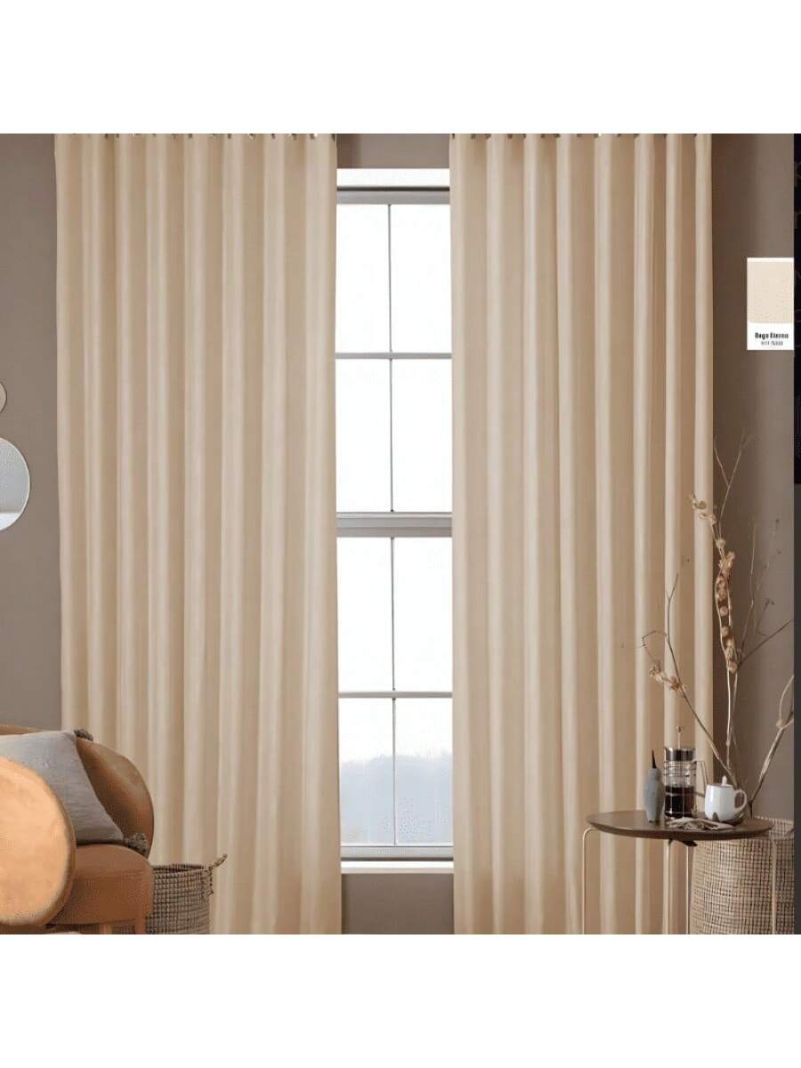 Cortinas beige con estilo moderno y sistema de ollaos para barras. Color neutro que combina con cualquier decoración, proporcionando calidez y elegancia discreta mientras regula la entrada de luz en tus espacios.