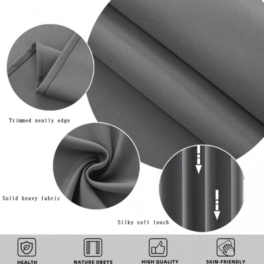 Juego de cortinas gris rata con diseño contemporáneo y ollaos para barra. Tonos terrosos que añaden sofisticación moderna a la decoración, ofreciendo funcionalidad y estilo para diferentes ambientes del hogar.