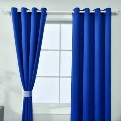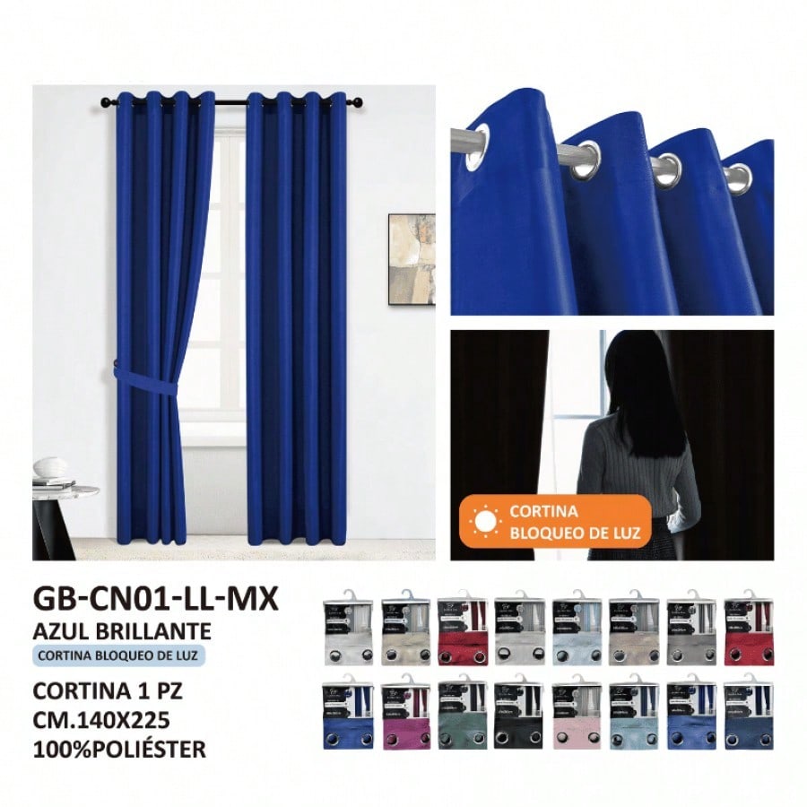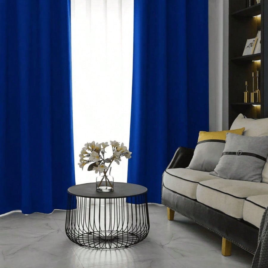 Juego de cortinas azul marino con diseño moderno y ollaos para barra. Color profundo y elegante que añade sofisticación a la decoración, proporcionando privacidad y control lumínico con un estilo contemporáneo y atemporal.