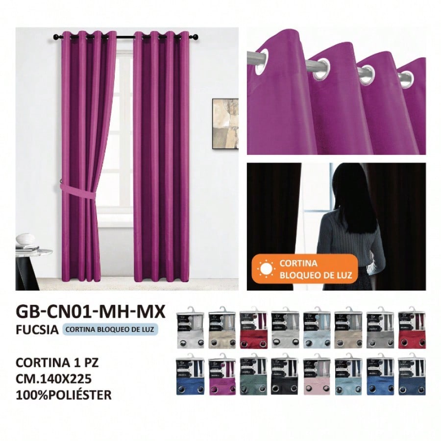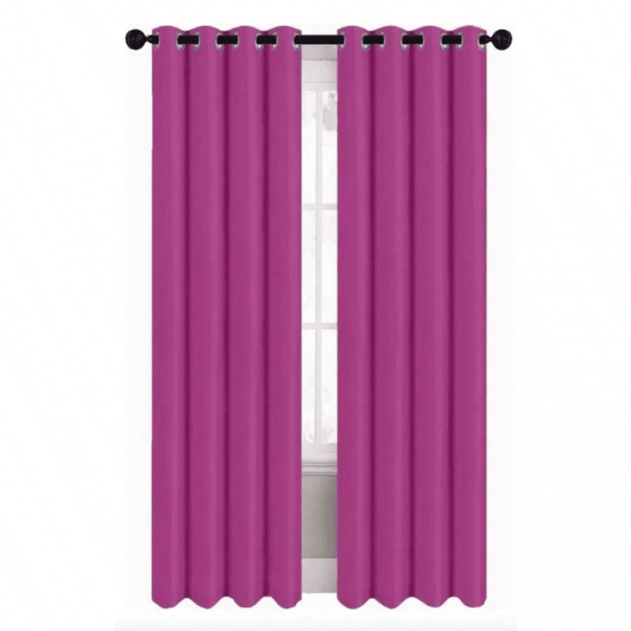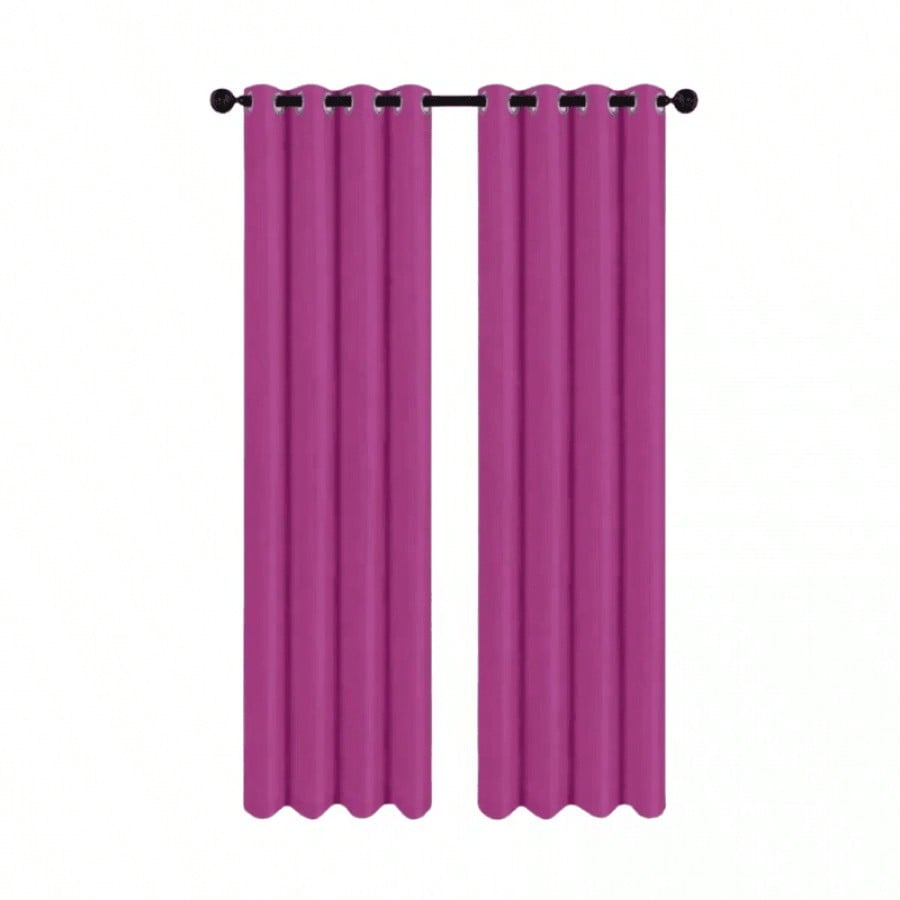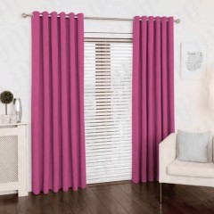 Cortinas rosas modernas con sistema de ollaos para fácil instalación en barra. Color dulce que aporta calidez y romanticismo a la habitación, regulando suavemente la luz natural para crear ambientes acogedores.