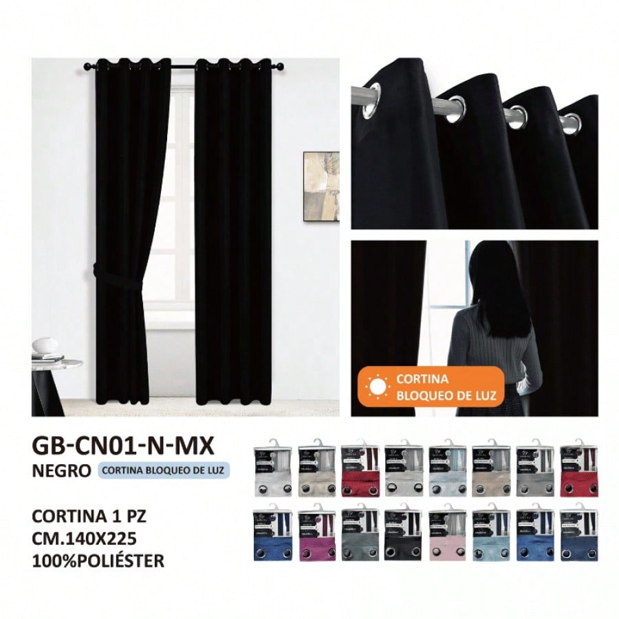 Cortinas negras modernas con sistema de ollaos para barra. Color audaz que ofrece máximo control de luz y privacidad, perfecto para crear ambientes contemporáneos y elegantes con estilo definido.