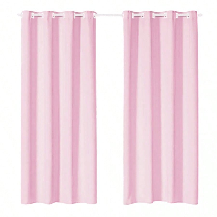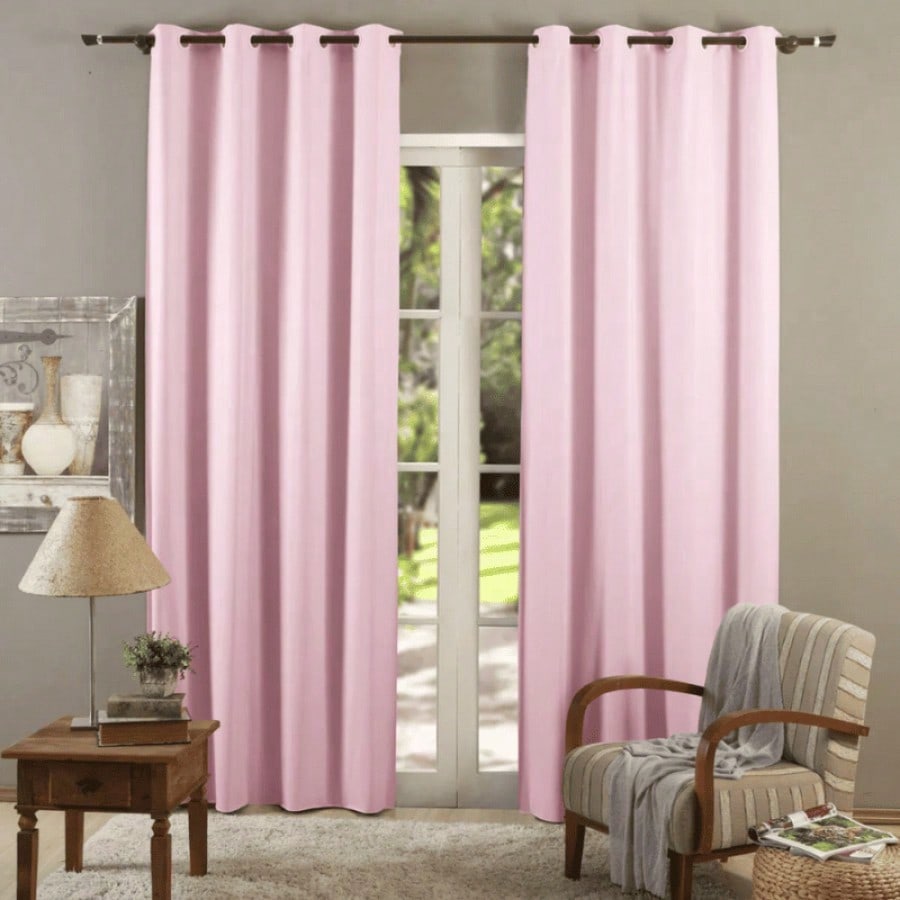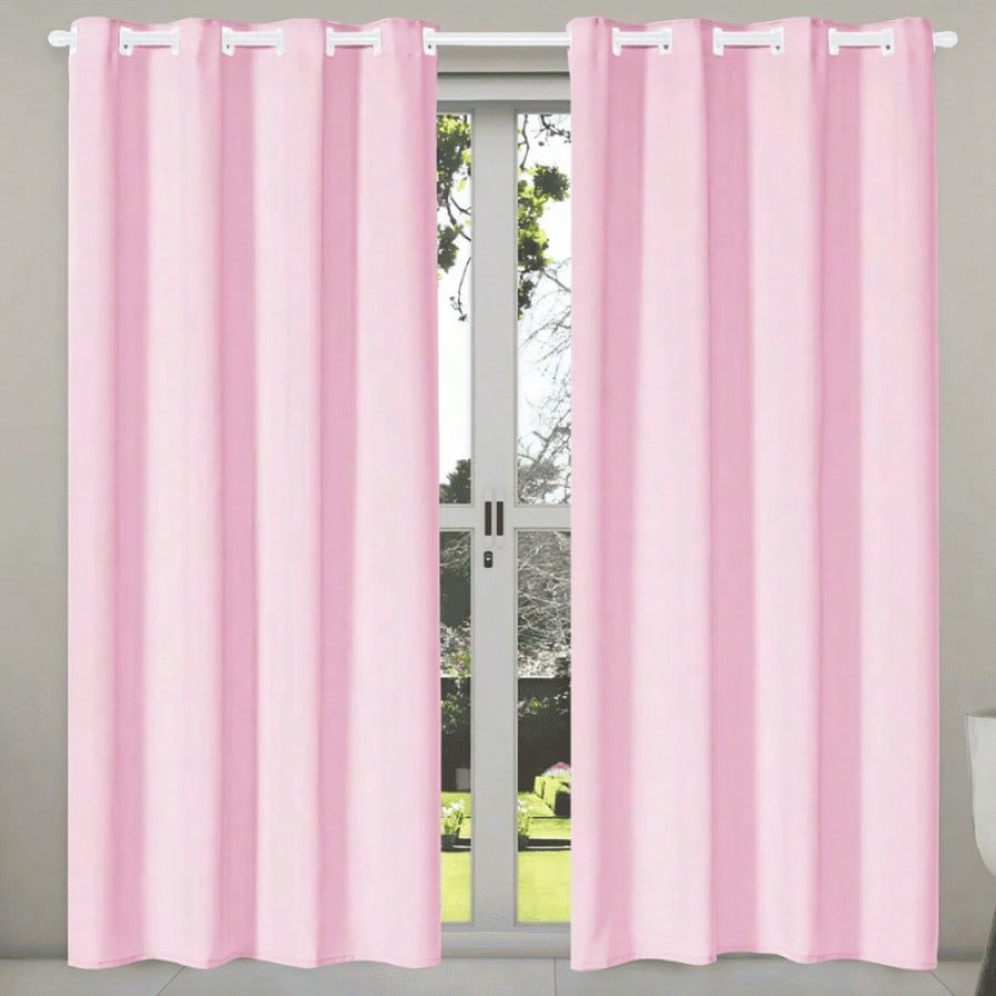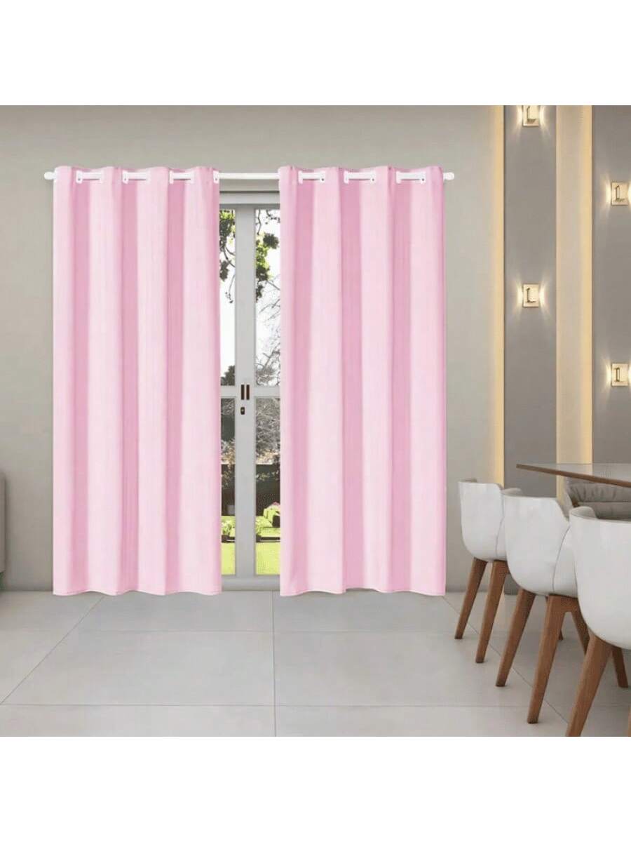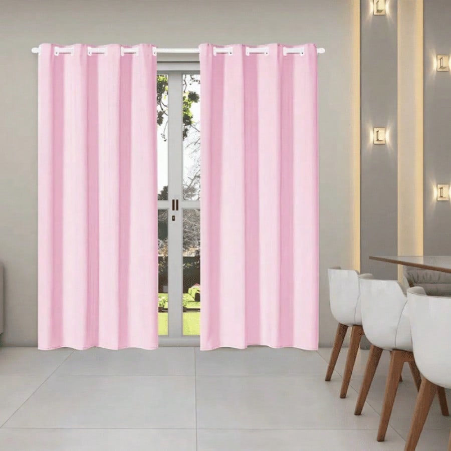 Cortinas rosa claro con diseño moderno y ollaos para fácil instalación. Tono suave que aporta delicadeza y luminosidad a la habitación, creando atmósferas serenas con un toque femenino discreto.