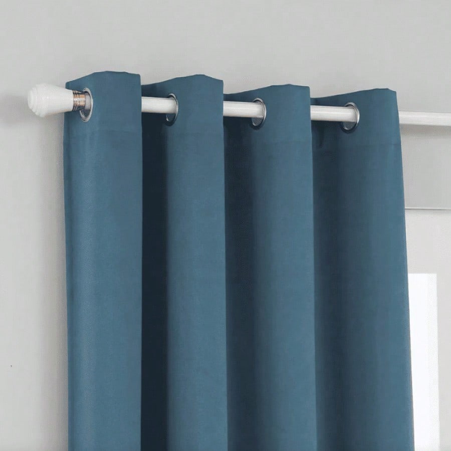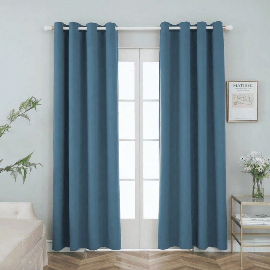 Cortinas menta opaco con estilo moderno y sistema de ollaos. Color relajante y actual que combina frescura con elegancia, regulando la entrada de luz para ambientes tranquilos y armoniosos.