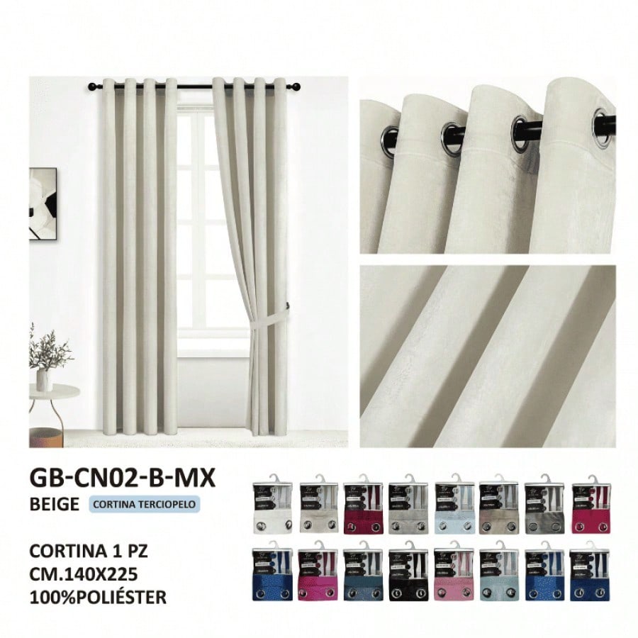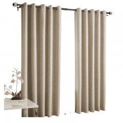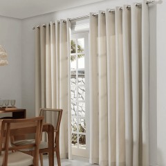 Cortinas beige con diseño moderno y sistema de ollaos para barra. Tonos neutros que aportan calidez y versatilidad a la decoración, regulando suavemente la luz natural en cualquier estancia.