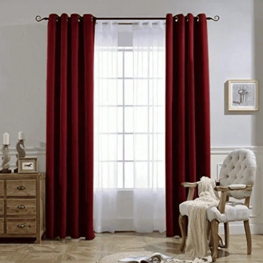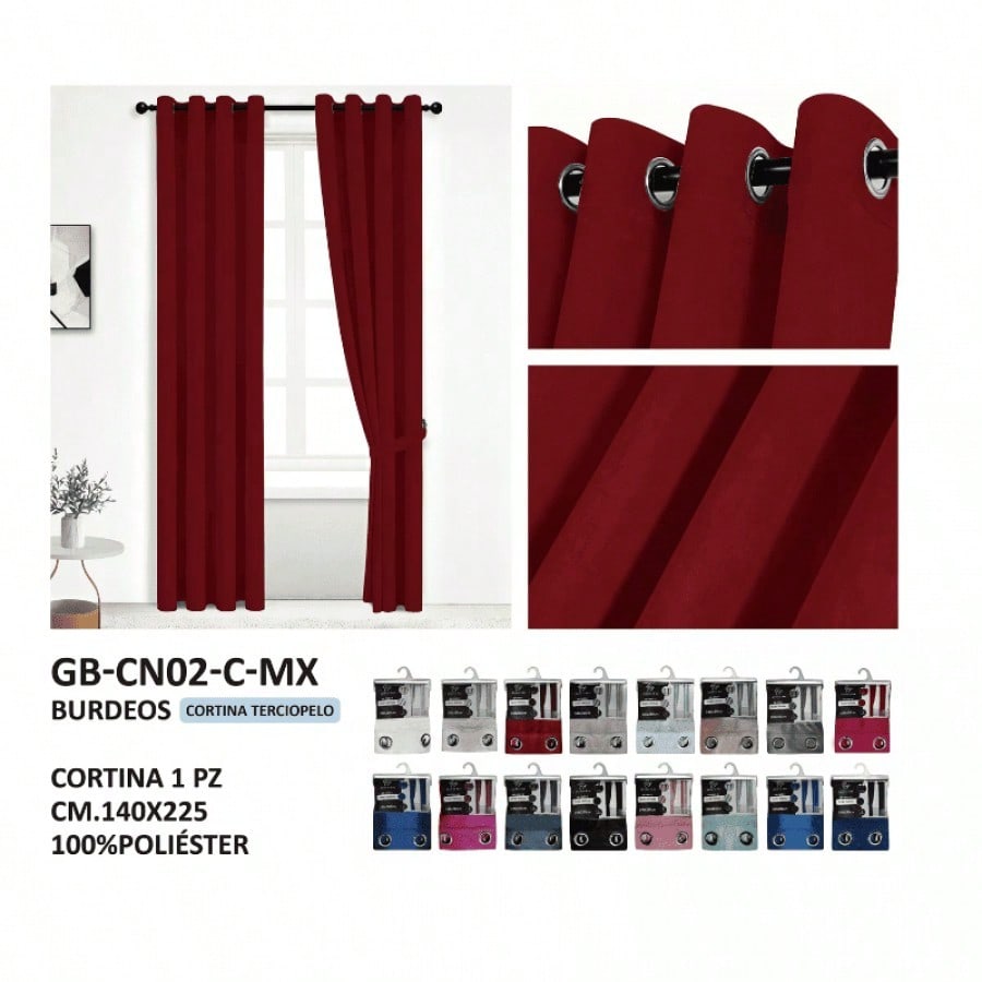 Cortinas vino con estilo moderno y ollaos para barra. Color profundo y acogedor que añade elegancia y calidez al espacio, ideal para crear ambientes íntimos con personalidad definida.