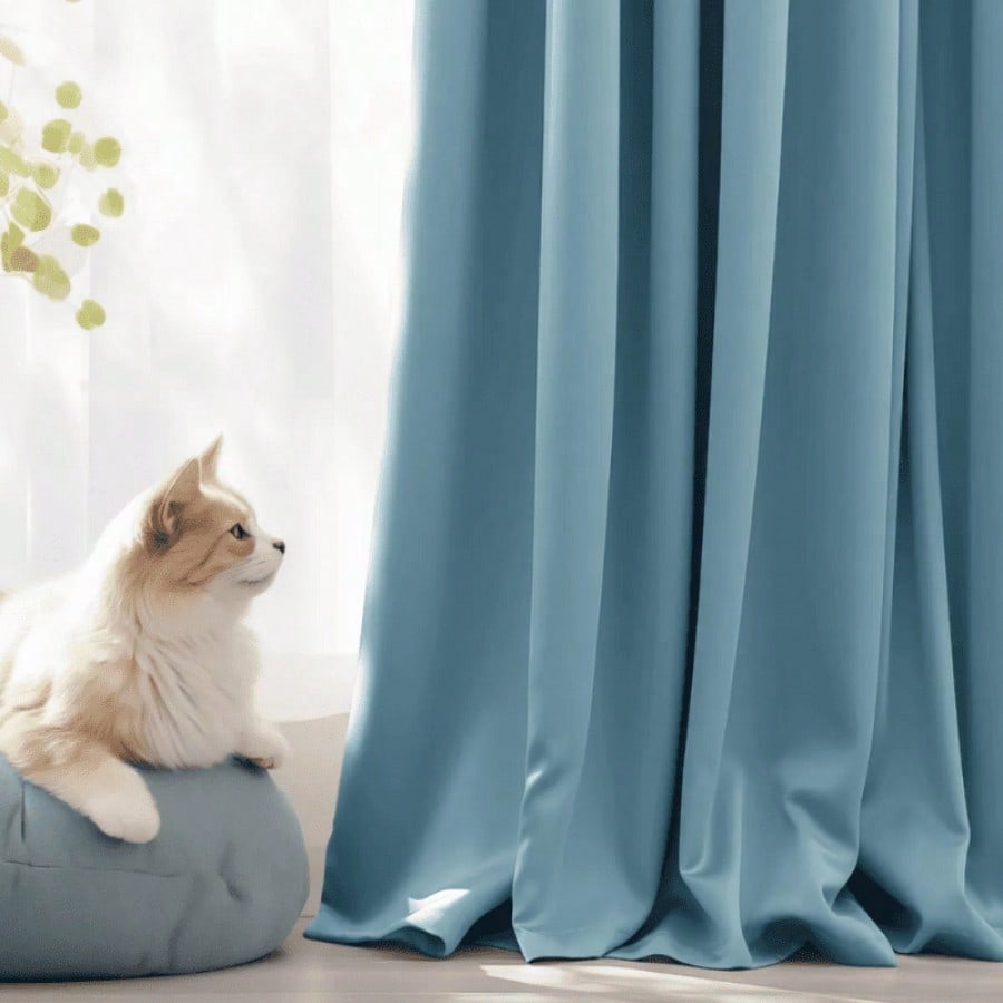 Cortinas verde opaco con diseño moderno y ollaos para barra. Tonos terrosos que evocan naturaleza y tranquilidad, perfectas para crear ambientes relajados con control suave de la luz.