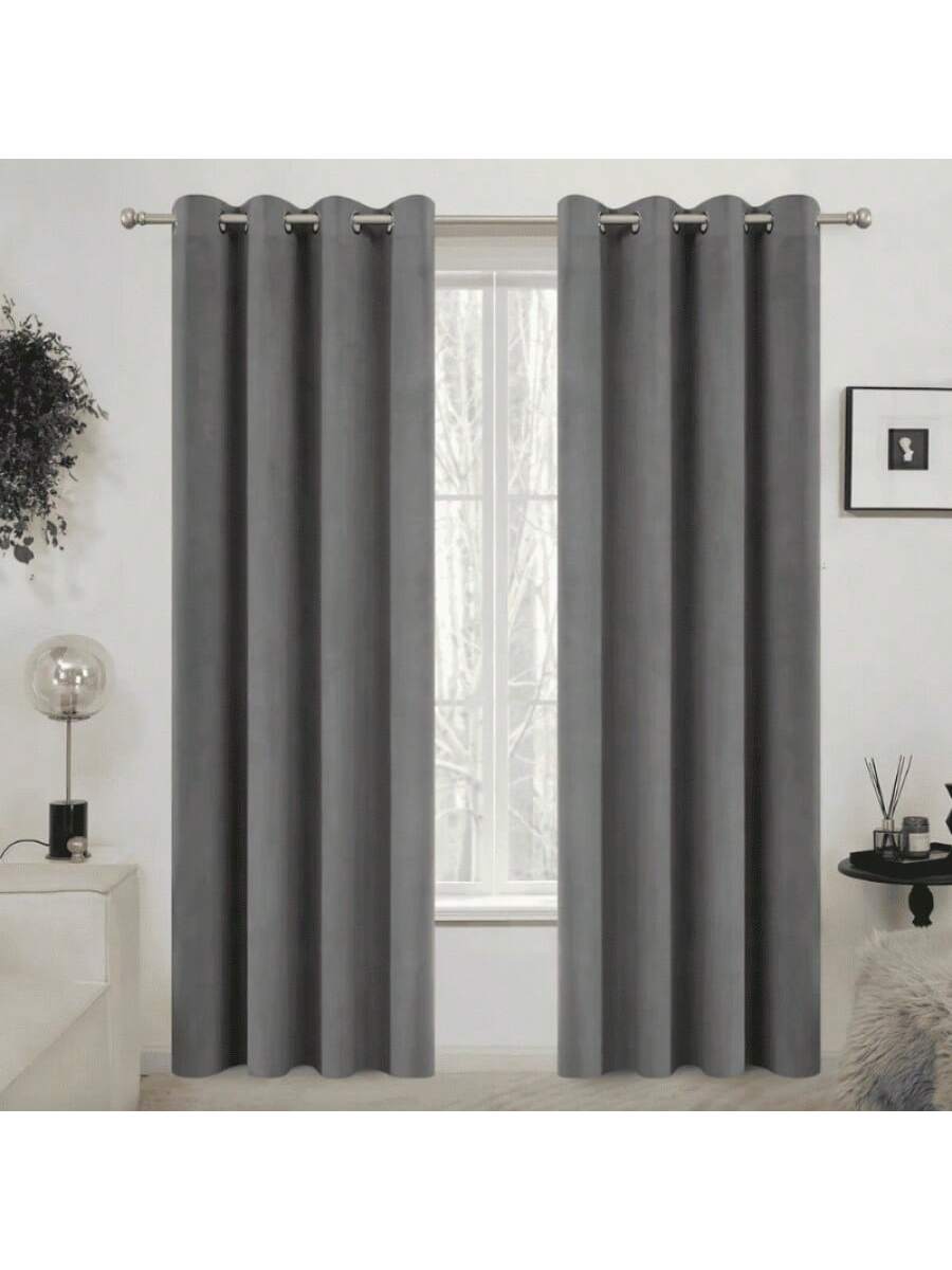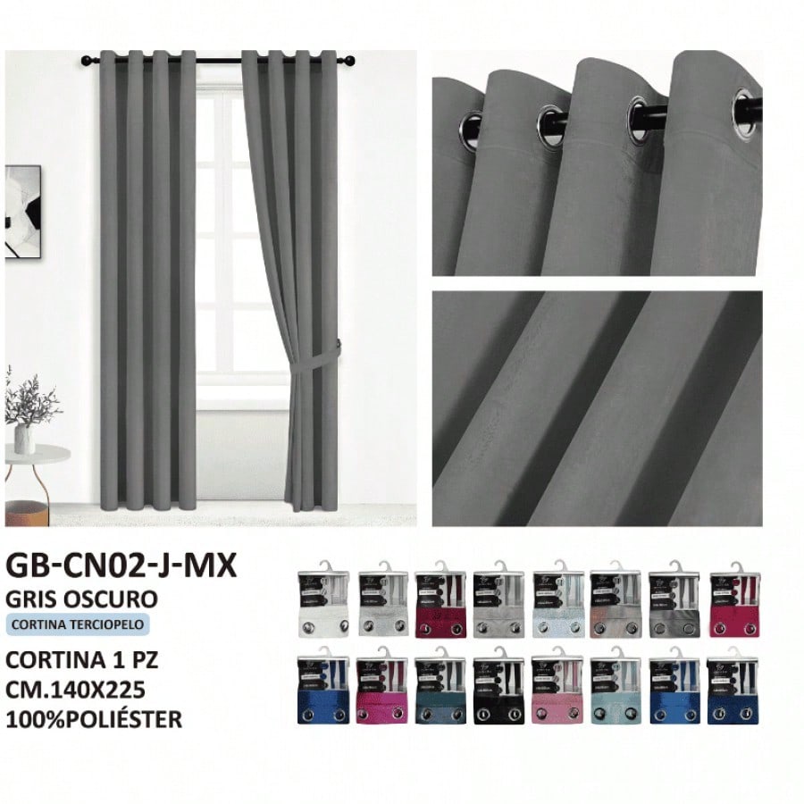 Cortinas grises modernas con ollaos para fácil instalación. Tonos neutros que ofrecen versatilidad decorativa, proporcionando privacidad y control de luminosidad con estilo contemporáneo.