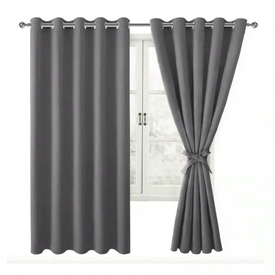 Juego de Cortinas Grises Modernas con Ollaos para Barra