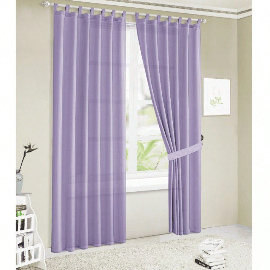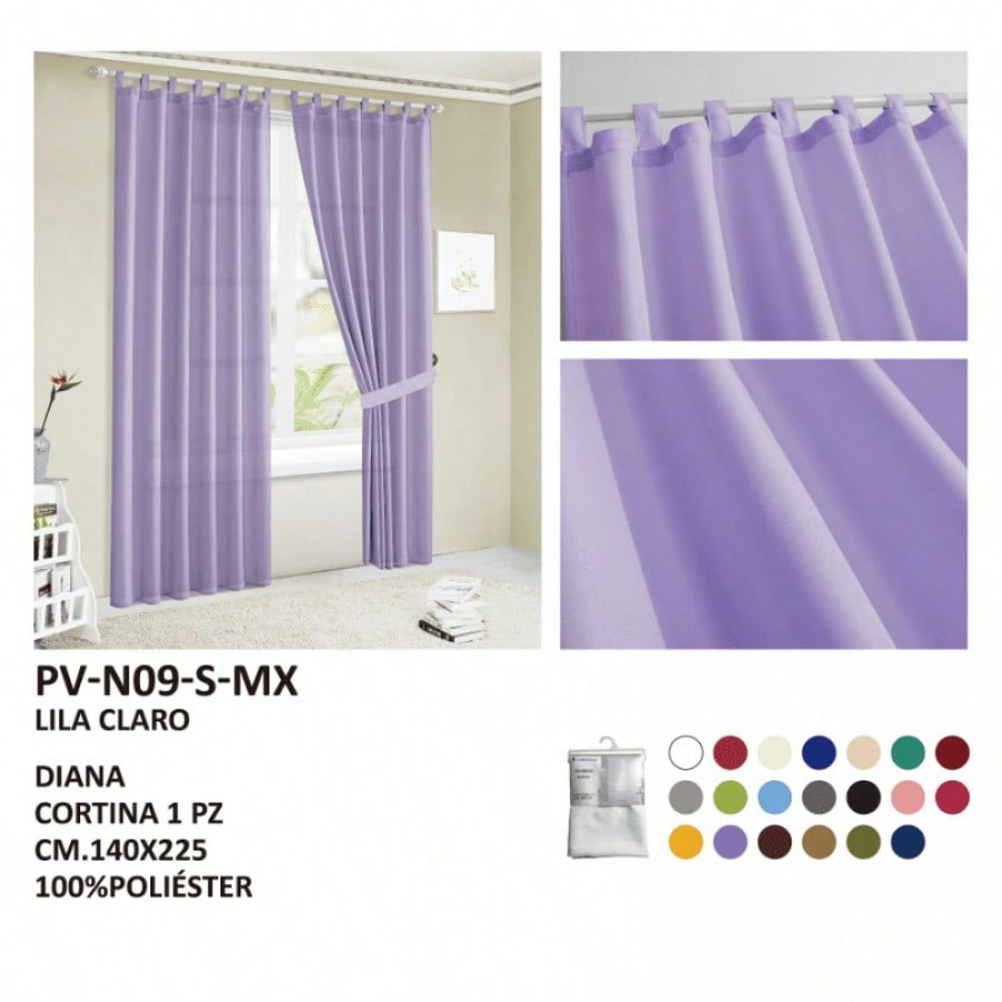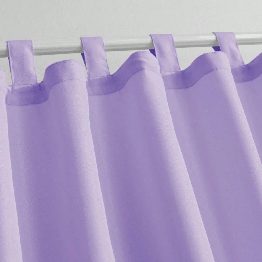 Cortinas violetas con sistema de ollaos para fácil instalación. Color que aporta un toque creativo y espiritual a la decoración, regulando la entrada de luz para crear atmósferas únicas y personalizadas en tu habitación.