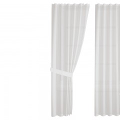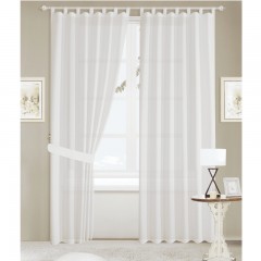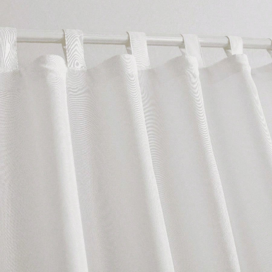 Cortinas blancas con ollaos para barra. Color clásico que maximiza la luminosidad natural mientras proporciona privacidad. Crean ambientes frescos, amplios y llenos de luz, adaptándose a cualquier estilo decorativo.