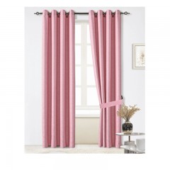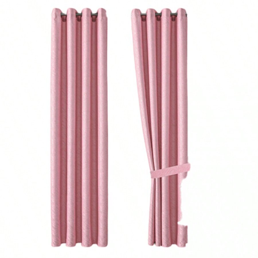 Cortinas color salmón con sistema de ollaos para barra. Tono cálido y acogedor que añade un toque sofisticado a la habitación, regulando suavemente la luz natural para crear espacios íntimos y confortables.