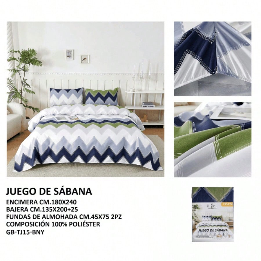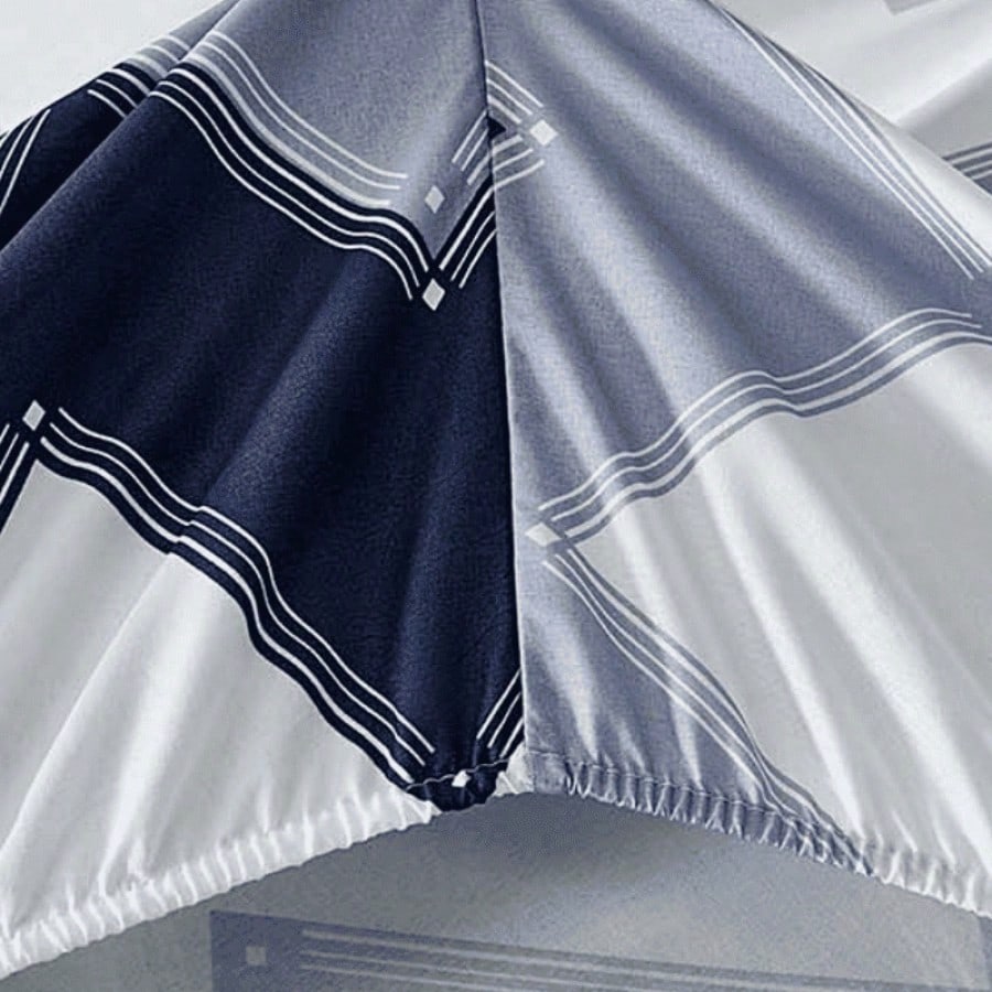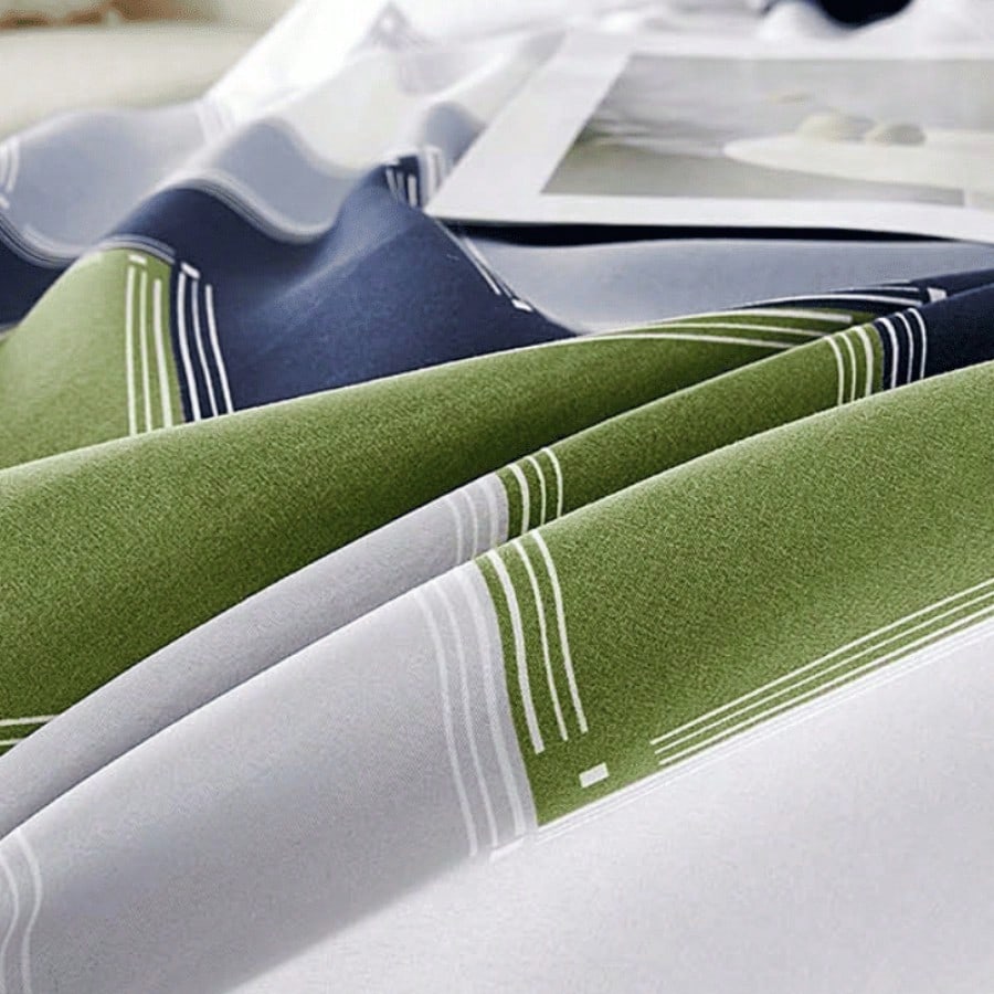 Funda nórdica con chevrón azul y blanco. Diseño geométrico contemporáneo que combina frescura y elegancia. Los tonos azules aportan serenidad creando un ambiente relajante y moderno para el descanso.