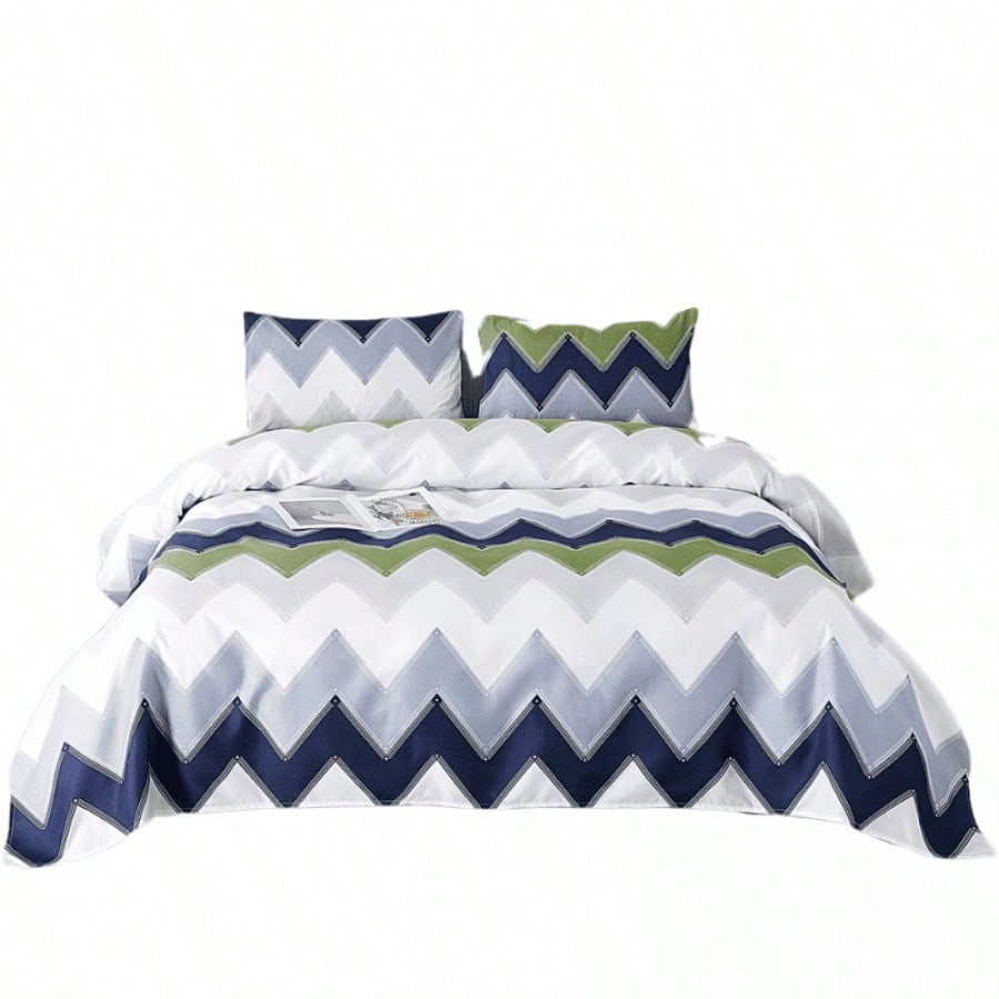 Juego de Funda Nórdica Estampado Chevron Azul y Blanco