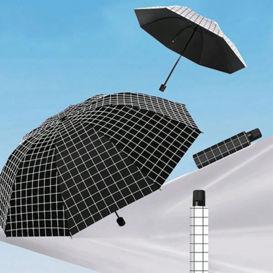 Enfrenta los días de lluvia con estilo clásico usando este paraguas manual de diseño a cuadros sobre negro. Su apertura manual es sencilla y fiable, ofreciéndote la protección que necesitas con un toque de elegancia atemporal. Práctico y siempre a la moda.