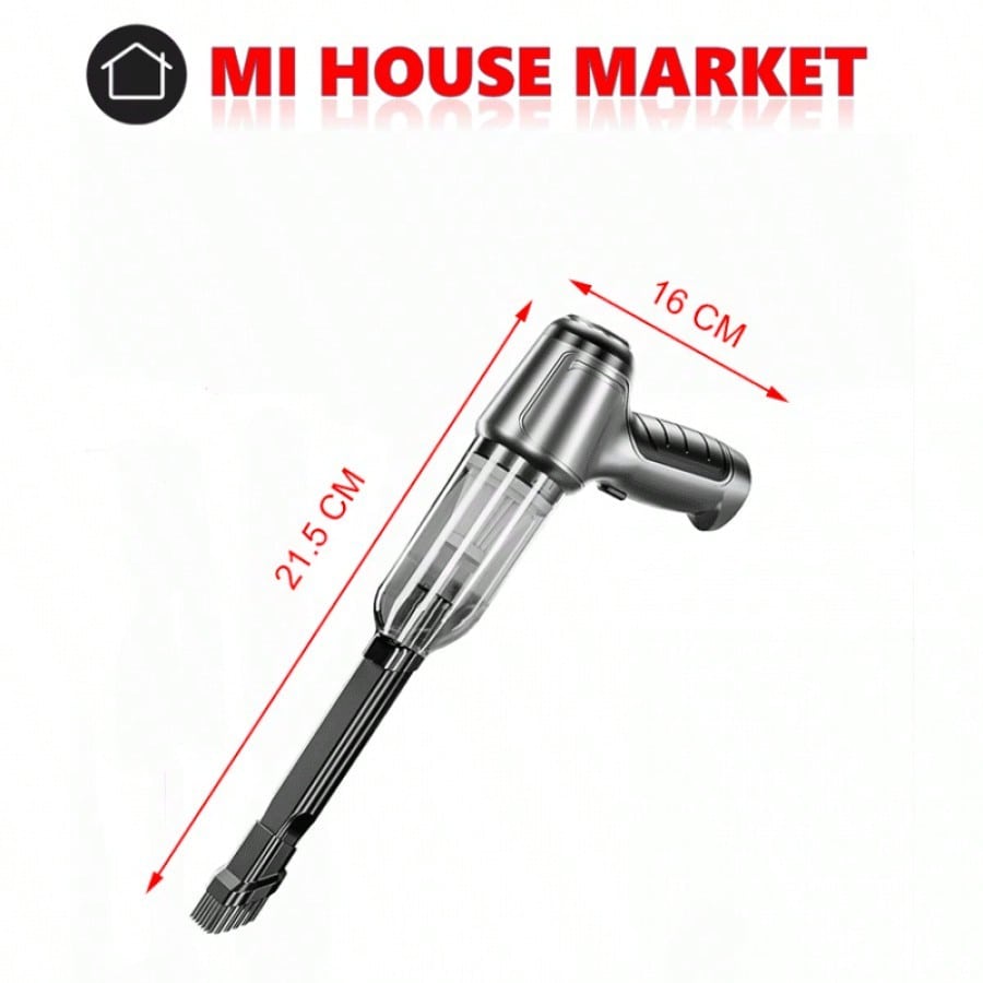 Aspiradora 2 en 1 con un diseño negro brillante y puerto de carga USB. Incluye dos baterías para una autonomía extendida, siendo ideal para una limpieza rápida y eficiente en el hogar o el coche. Una solución práctica para mantener tus espacios libres de polvo.
