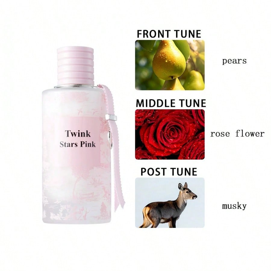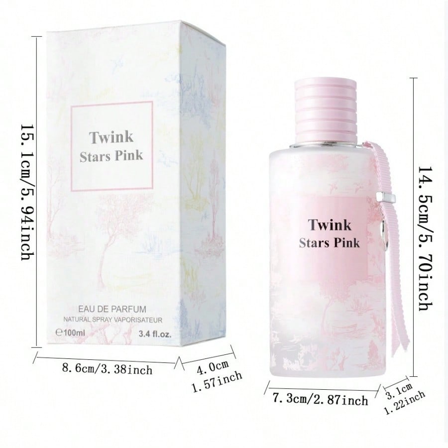 Este perfume femenino Twink Stars Pink de 100ml es una obra maestra de dulzura y frescura, ideado para mujeres que buscan encanto y vitalidad en cada momento. Como Eau de Parfum, ofrece una concentración olfativa superior que garantiza una duración de aroma prolongada (hasta 8 horas), perfecta para acompañarte durante todo el día. Su frasco de diseño rosa pastel con un detalle de cinta de raso rosa evoca romanticismo y delicadeza, mientras que la caja de empaque con patrones fantasiosos de estrellas y paisajes refuerza su estética soñadora. La fragancia combina notas de frutas jugosas y flores suaves, creando una sensación de alegría y feminidad ligera. Ideal para ocasiones diarias, citas o fiestas informales, este perfume te envolverá en un aura de frescura irresistible. El vaporizador natural spray permite una aplicación uniforme y precisa. Con 100ml (3.4 fl. oz), es una elección perfecta para tu rutina o un regalo encantador para quien aprecie el estilo dulce y moderno.