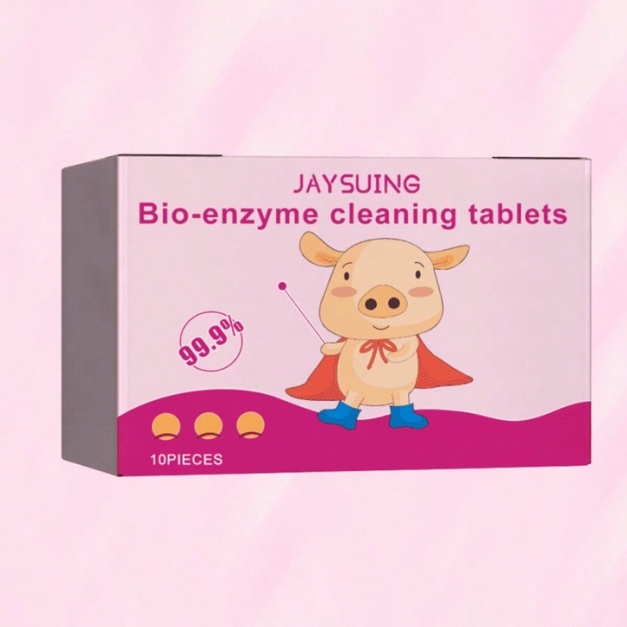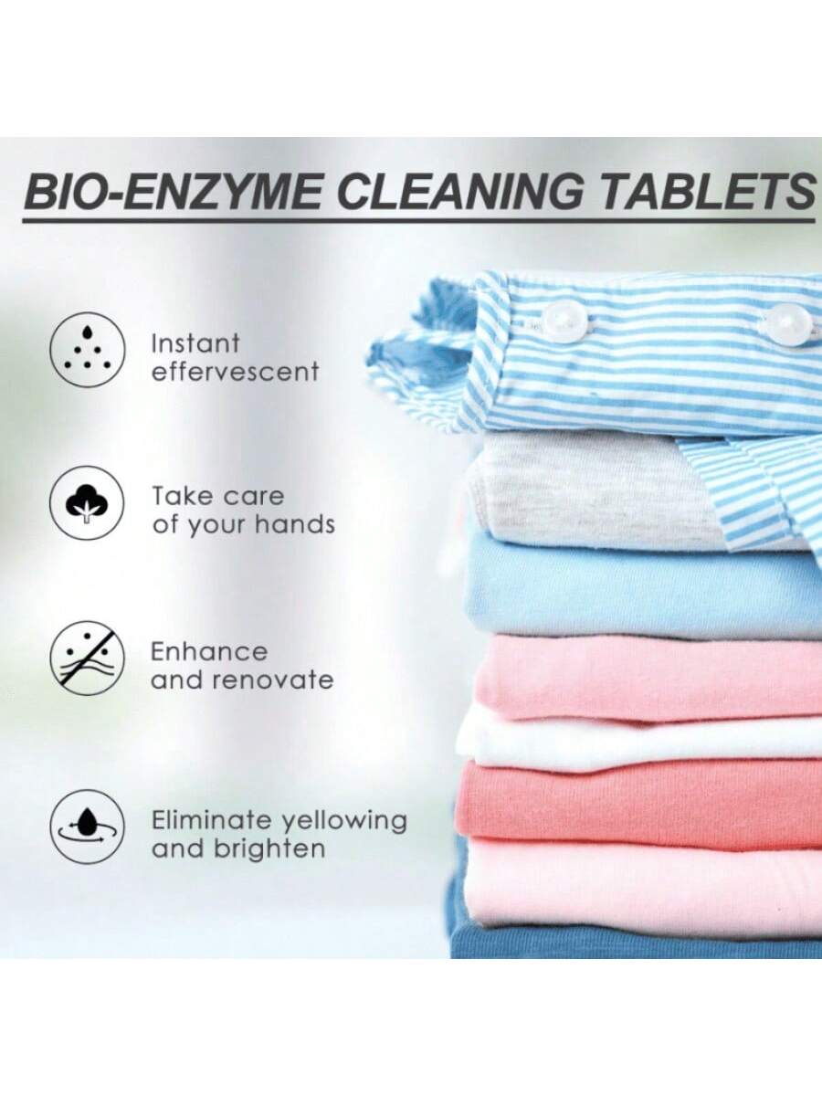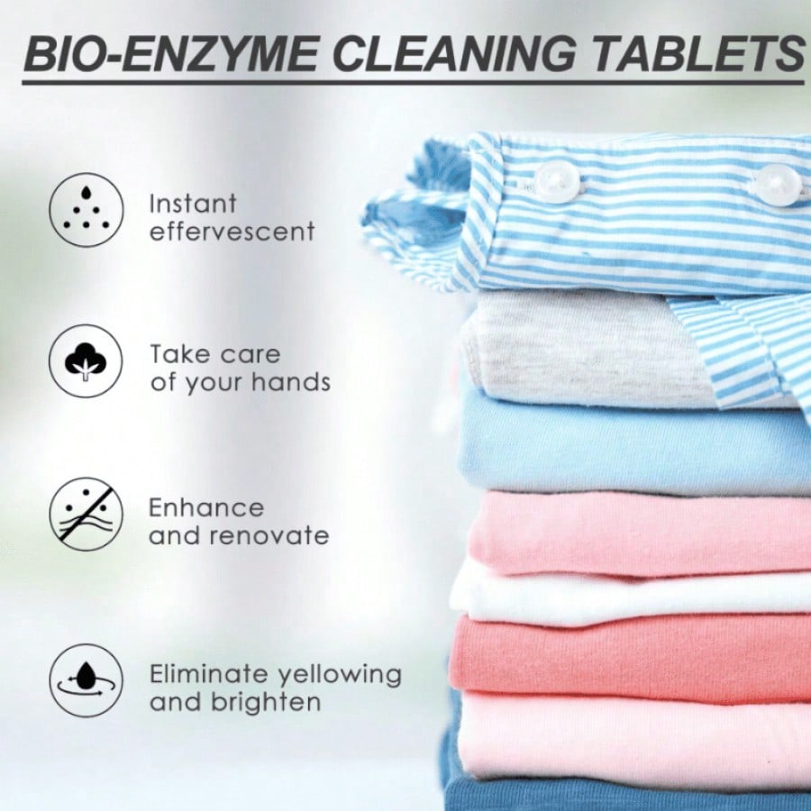 Comprimidos efervescentes que contienen una mezcla de sales y bioenzimas. Diseñados para disolverse en agua y crear una solución limpiadora, ideal para la higiene o el cuidado personal de manera práctica y eficaz.