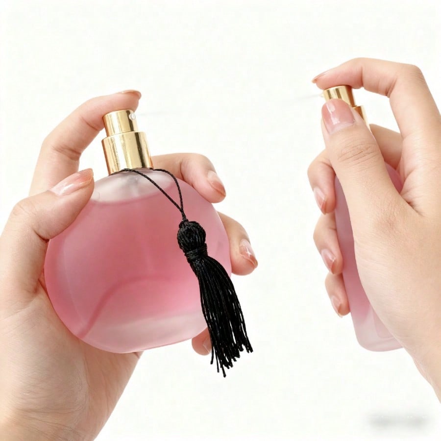 1. Fragancia floral dulce y envolvente, ideal para mujeres modernas y seguras de sí mismas, con una duración excepcional en la piel (hasta 8 horas). 2. Botella de vidrio de alta calidad con diseño esférico rosa pastel, adorno de borla negra y atomizador de aleación dorada, estética sofisticada y llamativa. 3. Formato práctico de 50ml, perfecto para el uso diario, viajes o como regalo premium para ocasiones especiales. 4. Composición olfativa cuidadosamente elaborada, equilibrio perfecto entre frescura y calidez, apta para todo tipo de ocasiones (diarias, eventos sociales o cenas).