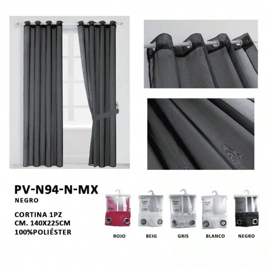 Cortinas transparentes color negro de alta durabilidad de 140cm*225cm, CORTINA 1 PZ