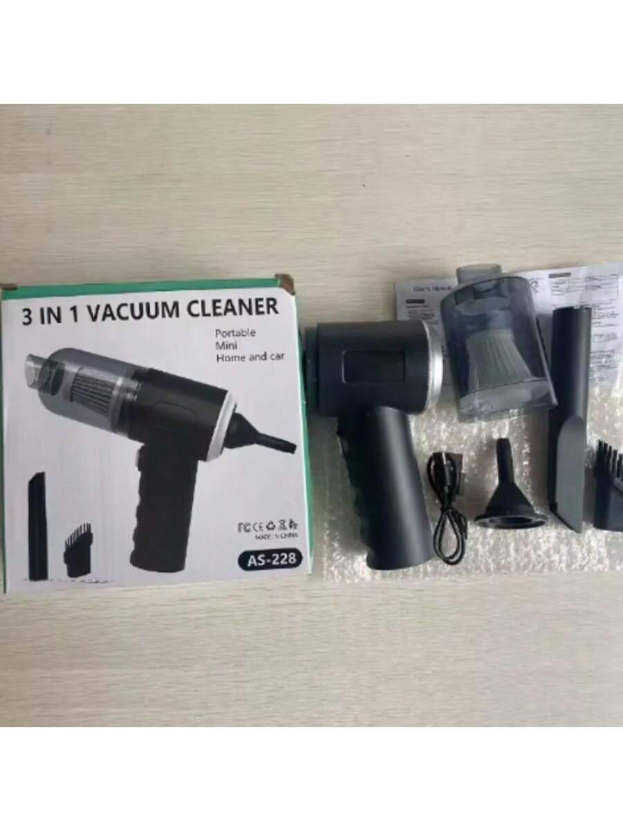 "Mantén tu vehículo y espacios de trabajo impecables con esta aspiradora de coche 3 en 1, la solución compacta y versátil para la limpieza diaria. Su diseño ergonómico tipo pistola en color negro es ligero y fácil de maniobrar, permitiéndote alcanzar los rincones más difíciles donde se acumula el polvo y las migajas. Este dispositivo destaca por su multifuncionalidad gracias a los accesorios intercambiables incluidos. El set viene equipado con una boquilla plana y larga ideal para grietas y espacios estrechos entre asientos, y una boquilla con cepillo perfecta para limpiar rejillas de ventilación, teclados o superficies delicadas sin rayarlas. Es una herramienta potente y totalmente portátil, diseñada para ofrecer una limpieza rápida y eficiente tanto en el interior de tu automóvil como en pequeñas áreas del hogar u oficina."