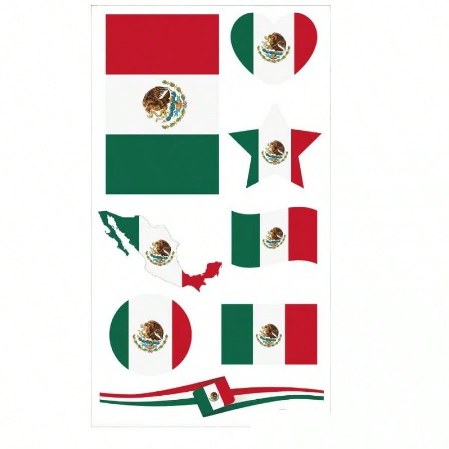 "Celebra tu orgullo nacional y lleva los colores de la patria en la piel con este tatuaje temporal de la bandera de México. Es el accesorio definitivo para complementar tu look durante el Grito de Independencia, el Cinco de Mayo o para apoyar a la selección nacional en el estadio sin necesidad de pintura facial que se corre o mancha. Este diseño destaca por sus colores vibrantes verde, blanco y rojo, ofreciendo una apariencia nítida y festiva. Su aplicación es rápida y sencilla mediante transferencia con agua, fijándose a la piel en cuestión de segundos. Es seguro, no tóxico y apto para todas las edades, ideal para colocarse en las mejillas, brazos o manos. Además, es fácil de retirar cuando lo desees utilizando aceite de bebé o alcohol, permitiéndote disfrutar de la fiesta con estilo y sin compromisos a largo plazo."